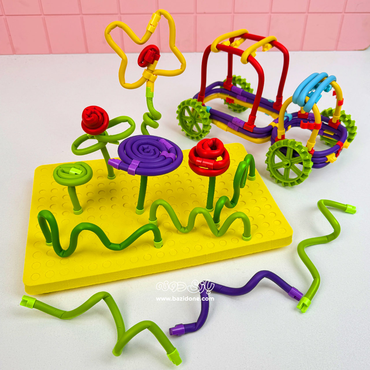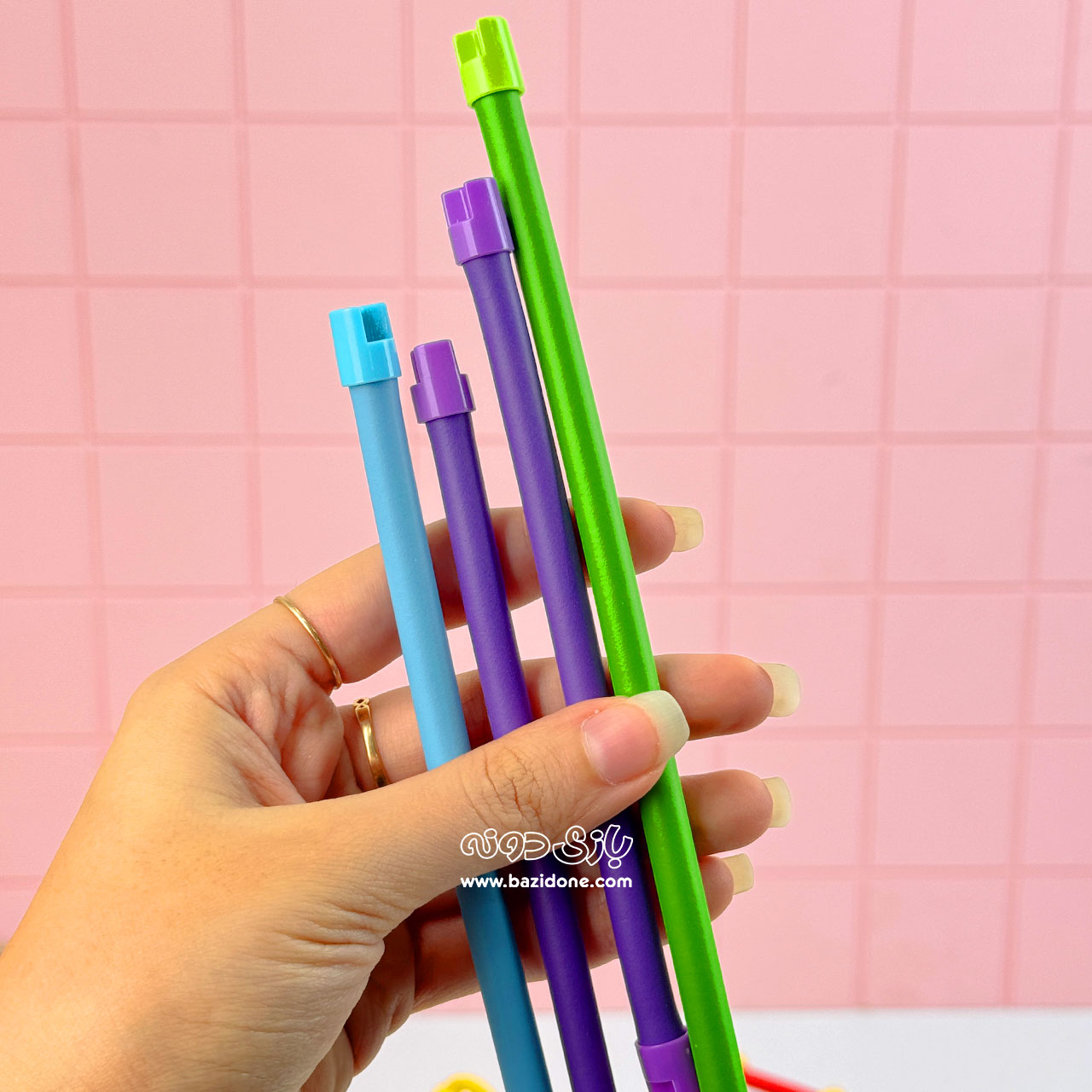 - قطعات نرم و منعطف: میلهها از پلاستیک نرم ساخته شدهاند که به راحتی خم میشوند و به هم متصل میگردند. این ویژگی باعث میشود بازی با آنها برای کودکان راحت و ایمن باشد. ✨