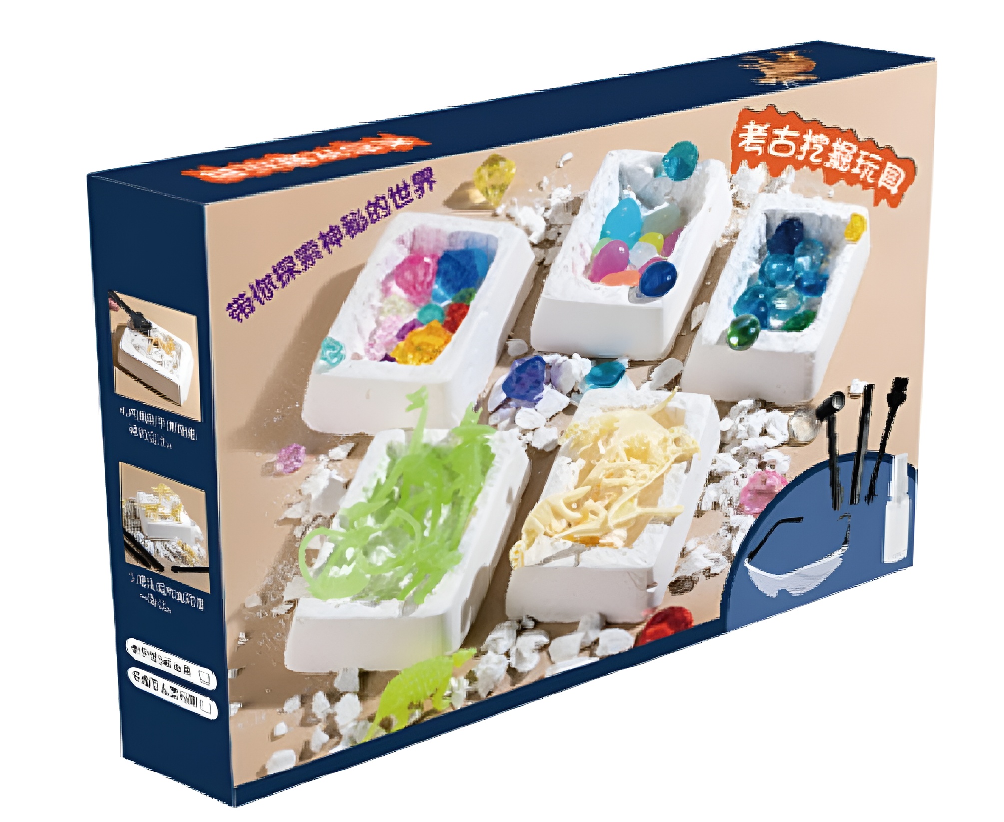 ابزارهای واقعی حفاری: این مجموعه شامل ابزارهایی شبیه به ابزارهای واقعی باستانشناسان است؛ از جمله چکش، اسکنه و یک فرچه تمیزکاری. این ابزارها به کودک کمک میکنند تا با دقت و تمرکز به حفاری بپردازد و تجربه بازی را واقعیتر میکند.