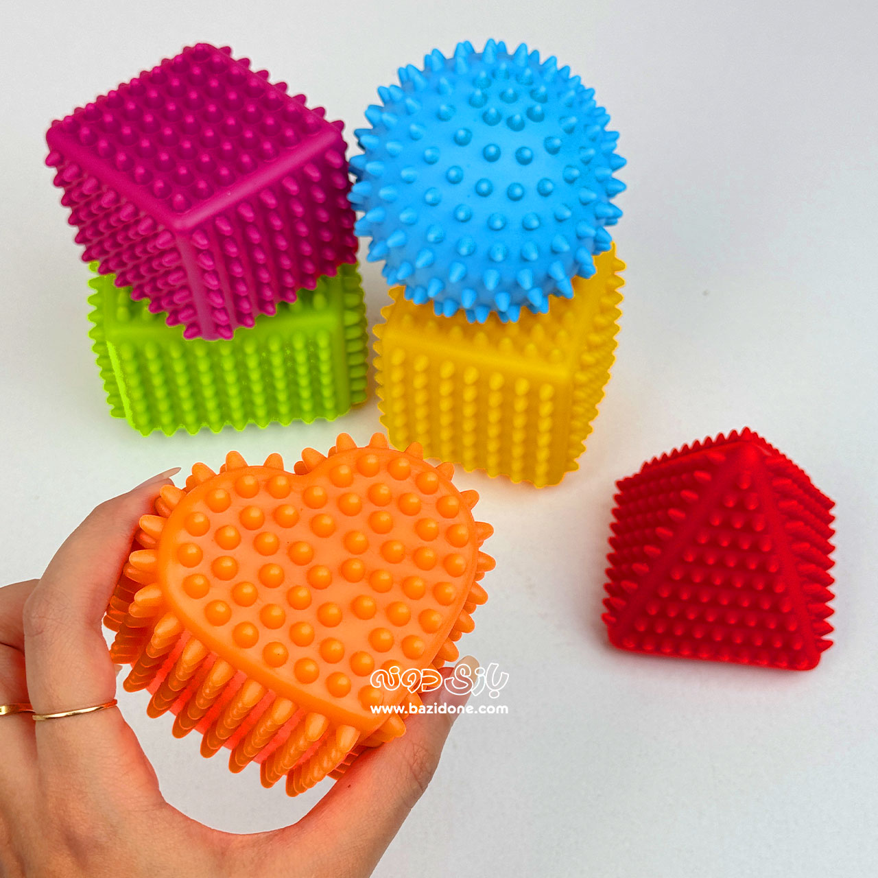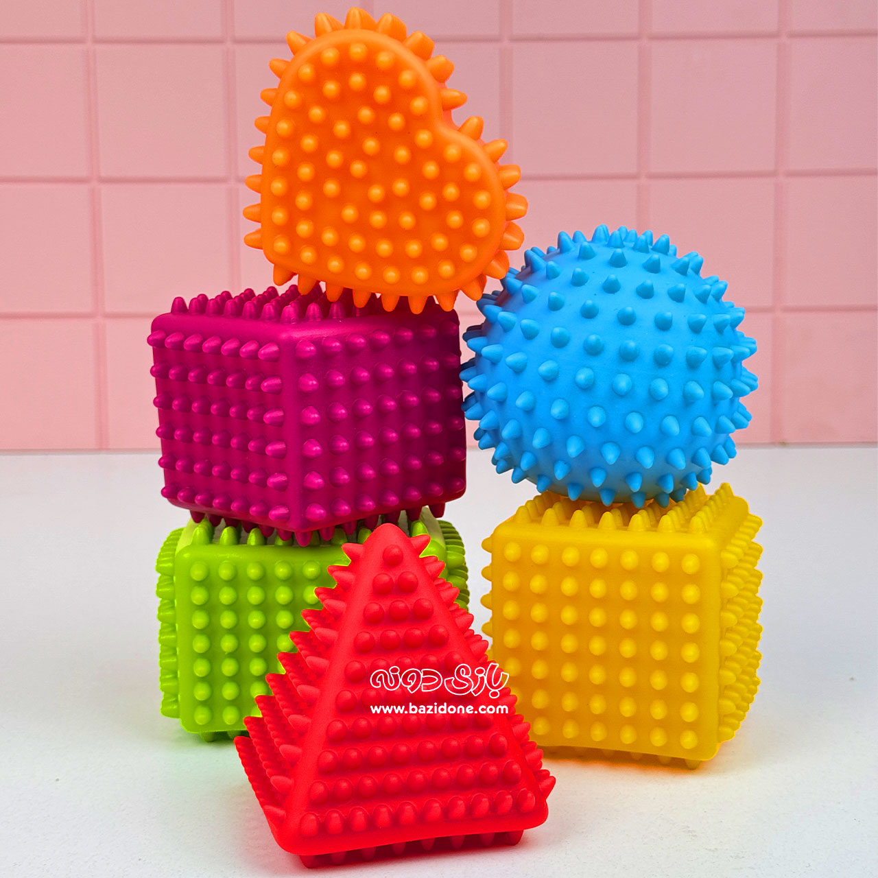 دنیای رنگی و هیجانانگیز اشکال حسی برای کوچولوی شما! 🌈👶 این پک 6 تایی شامل اشکال مختلف با بافتهای متنوع و رنگهای شاد، یه اسباببازی عالی برای کشف، یادگیری و سرگرمی نوزاد شماست. 💖