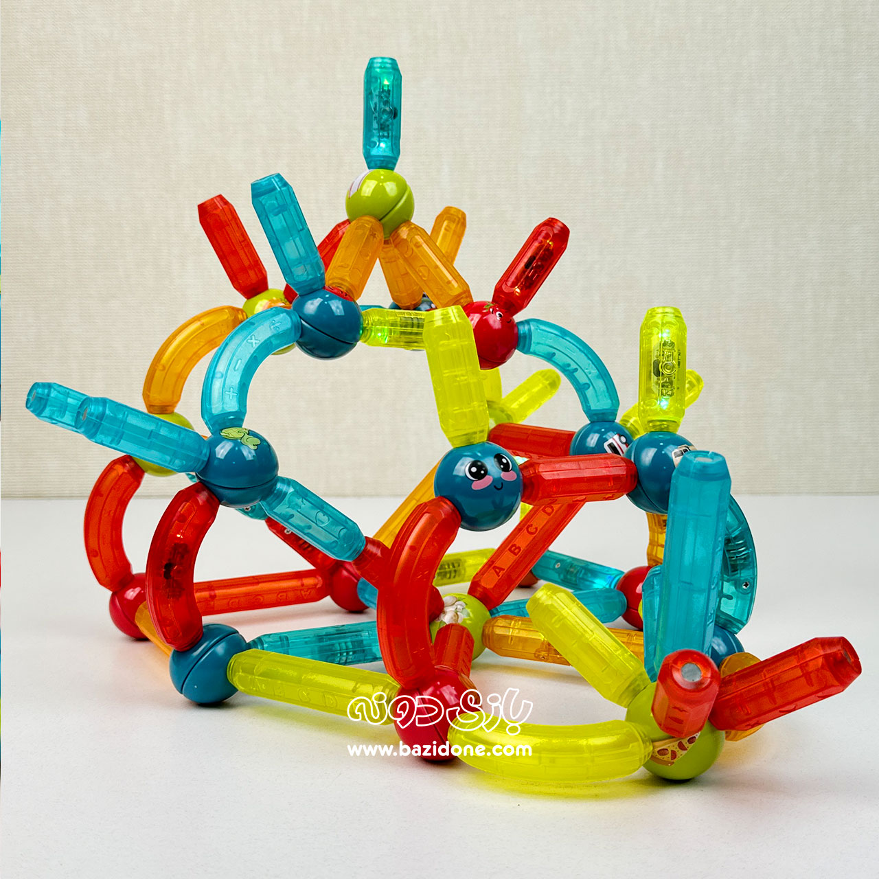 با “توپ و میله مگنتی چراغدار” ، کوچولوهای شما میتونن هر چیزی که توی ذهنشون دارن رو بسازن! 🏗️ این آجرهای رنگیرنگی با چراغهای LED جادوییشون، کلی شادی و هیجان برای بچهها به ارمغان میارن 🤩.