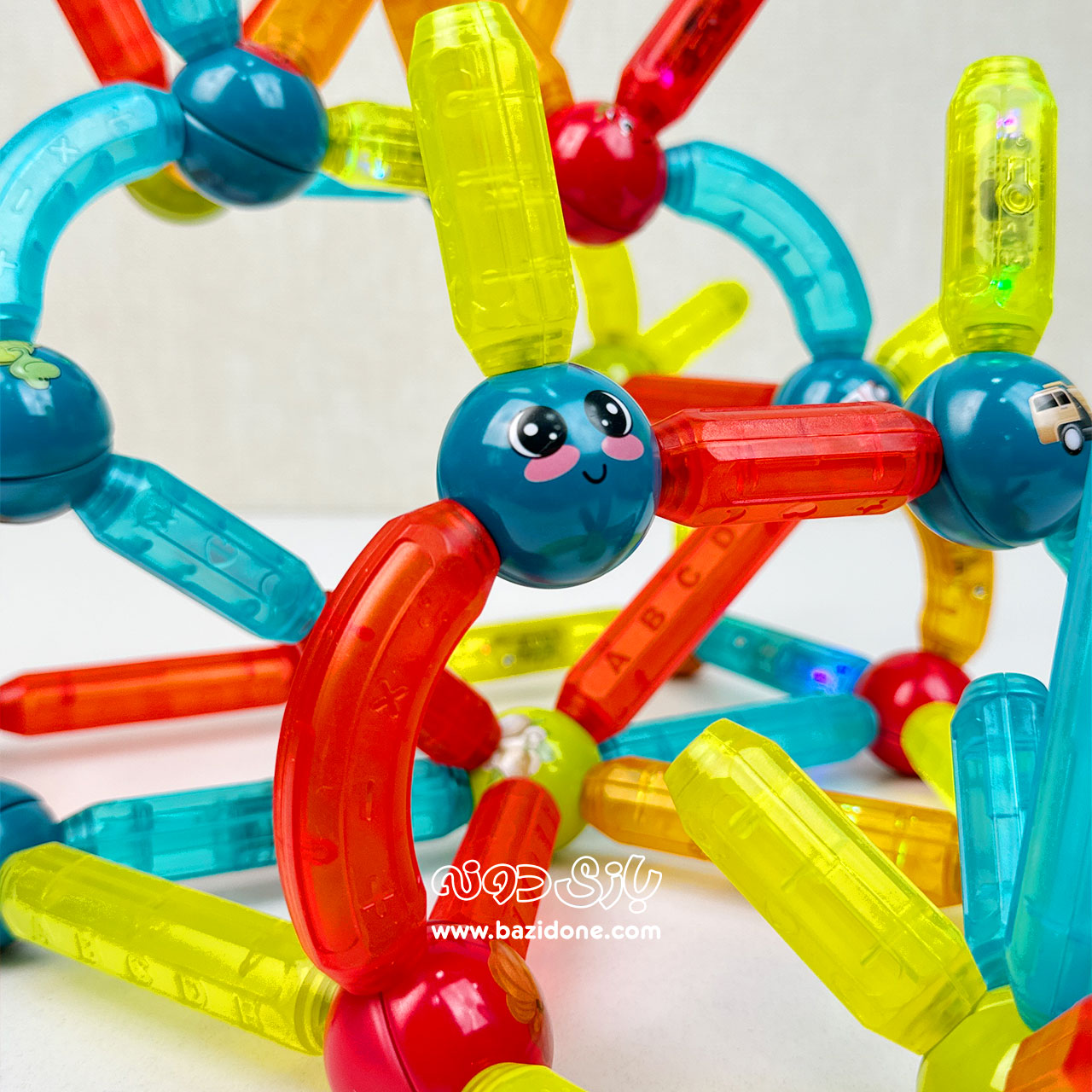خلاصه که با این توپ و میله مگنتی چراغدار 76 قطعه ، کوچولوهای شما میتونن یه عالمه چیزای هیجانانگیز بسازن و کلی بهشون خوش بگذره! 😉🎈