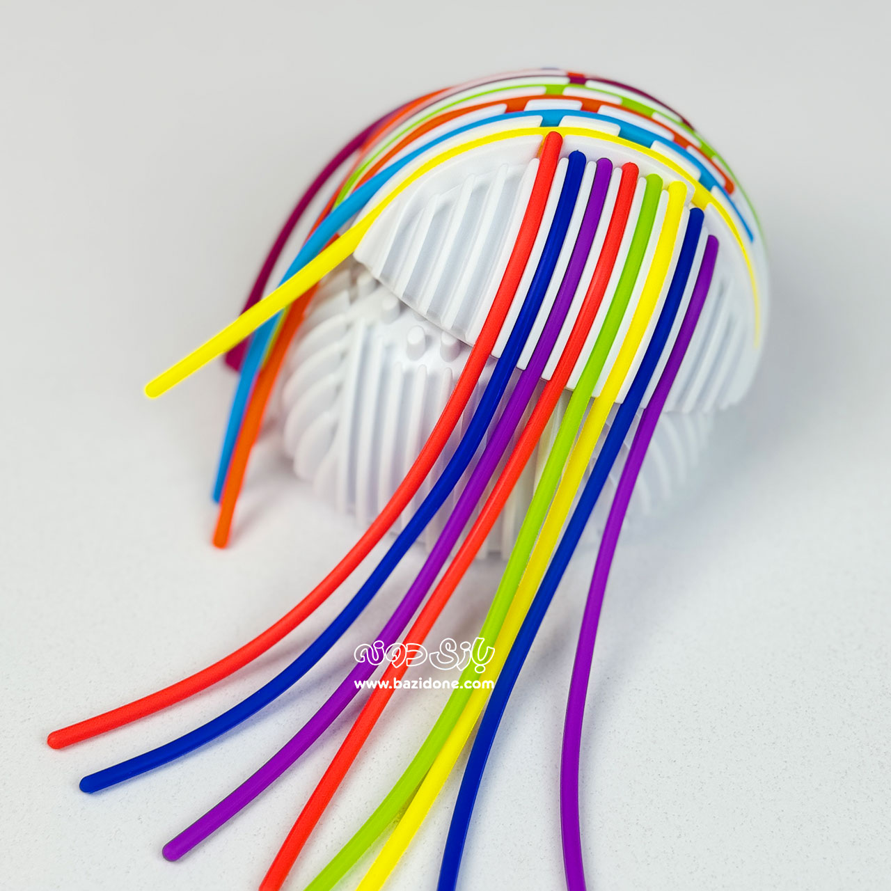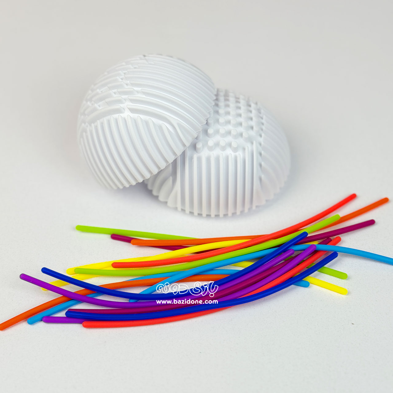 - تقویت مهارتهای حرکتی ظریف (Fine Motor Skills): عمل کشیدن، گرفتن و چرخاندن 16 نوار سیلیکونی، عضلات کوچک دست و انگشتان را تقویت میکند. این تمرین برای آمادگی کودک جهت انجام کارهایی مانند نوشتن، بستن دکمه و زیپ در آینده ضروری است.