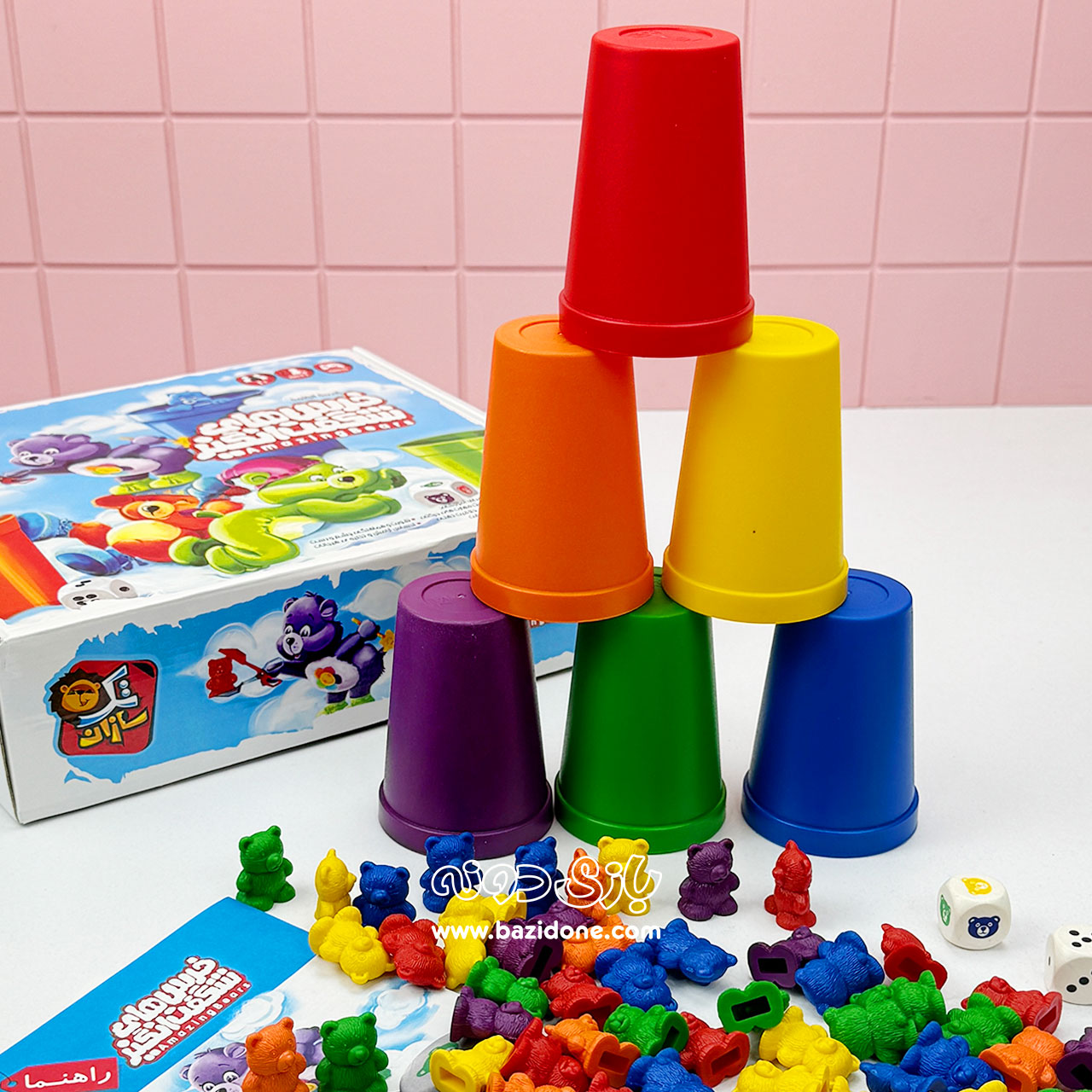 - 6 عدد لیوان رنگی برای دستهبندی خرسها.
