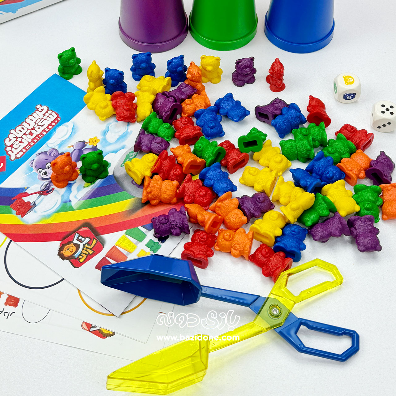 - تقویت سرعت عمل و هیجان: با استفاده از تاس رنگی و تاس اعداد، میتوانید یک بازی سرعتی گروهی راهاندازی کنید. هر بازیکن با انداختن تاس، باید به سرعت تعداد مشخصی خرس همرنگ را روی صفحهی مخصوص بچیند و اولین نفری باشد که زنگ را به صدا درمیآورد. ⏰