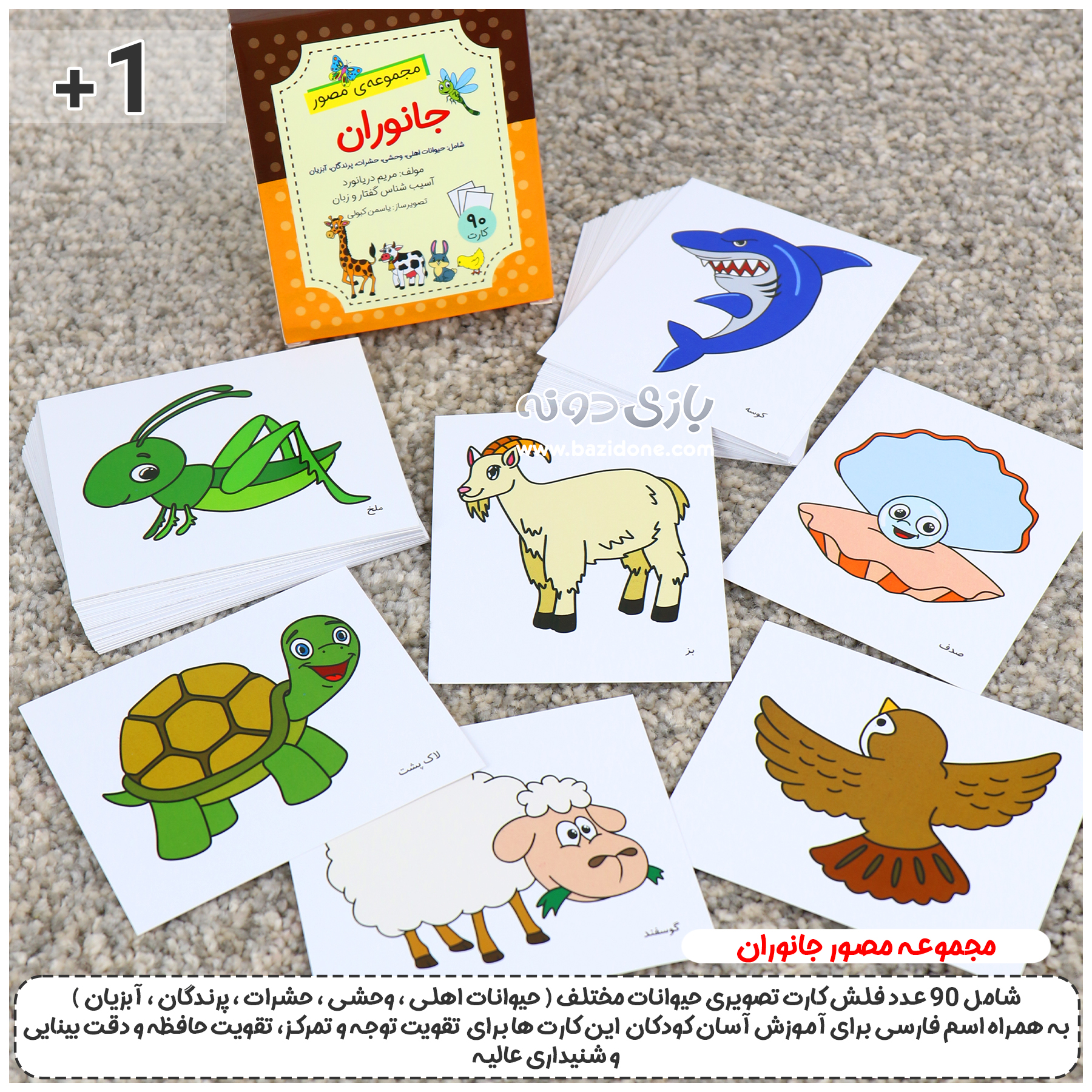 - 90 کارت تصویری یکرو: هر کارت با تصویری رنگی و جذاب، یک حیوان را به نمایش میگذارد.