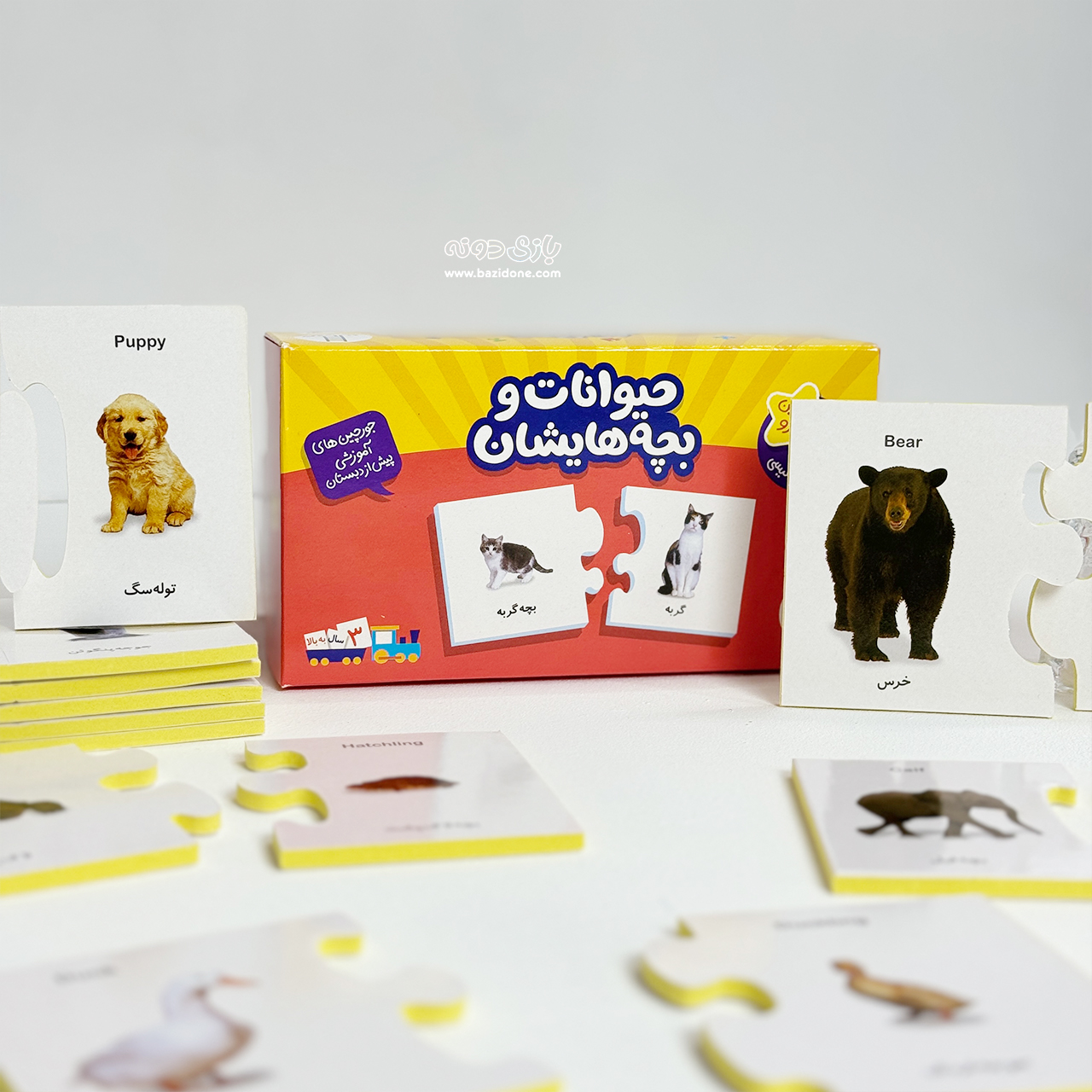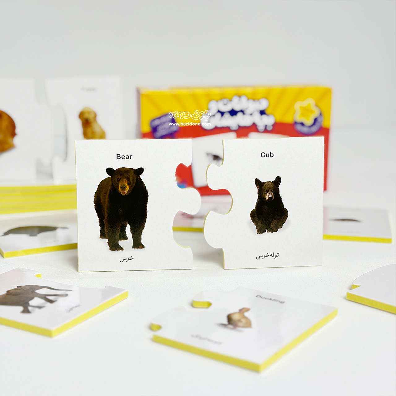در یک قطعه تصویر حیوان مادر و در قطعه دیگر بچه آن حیوان وجود دارد.