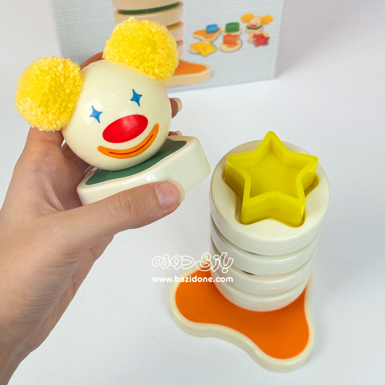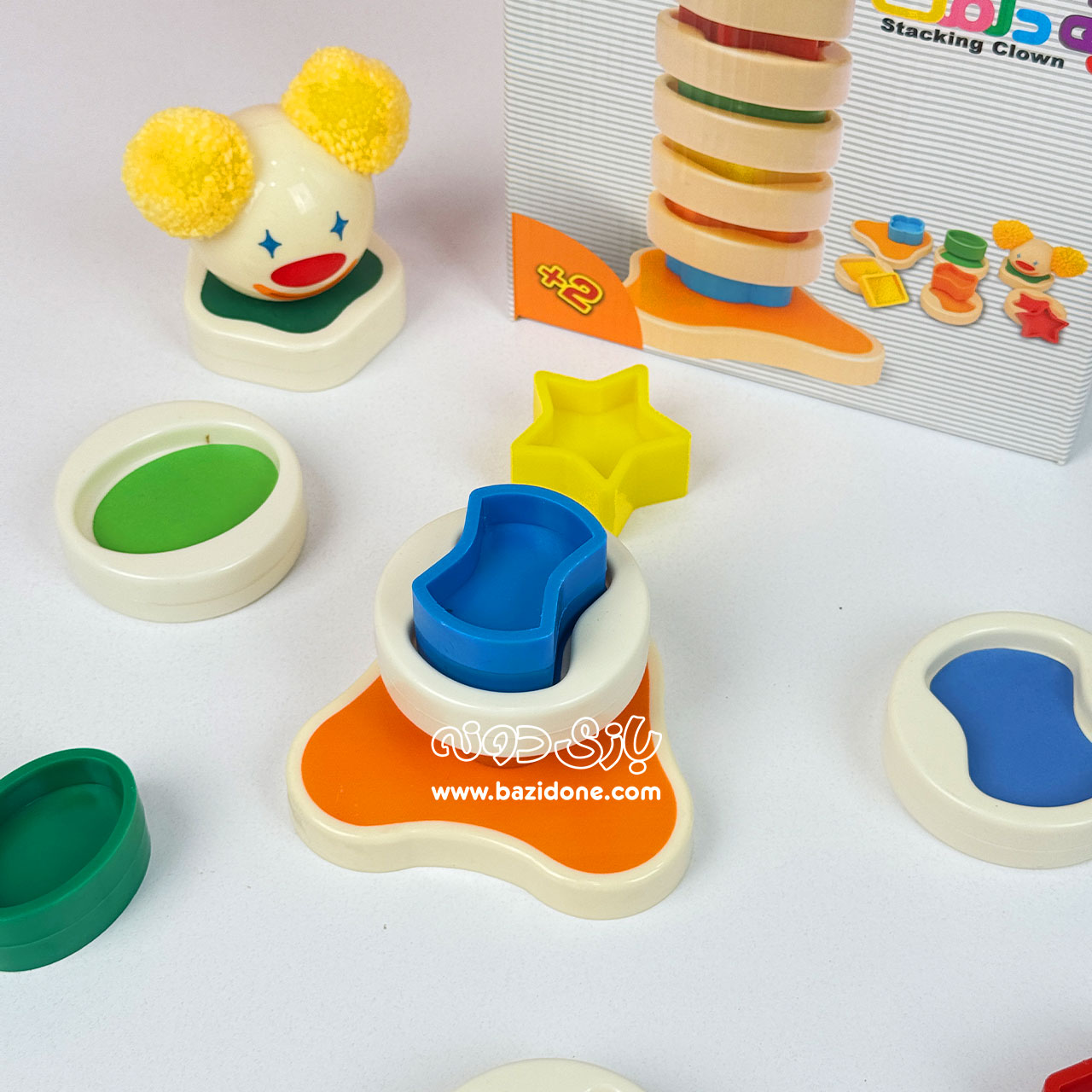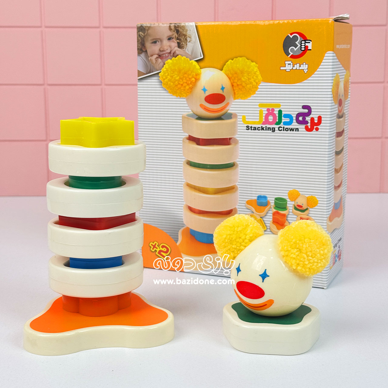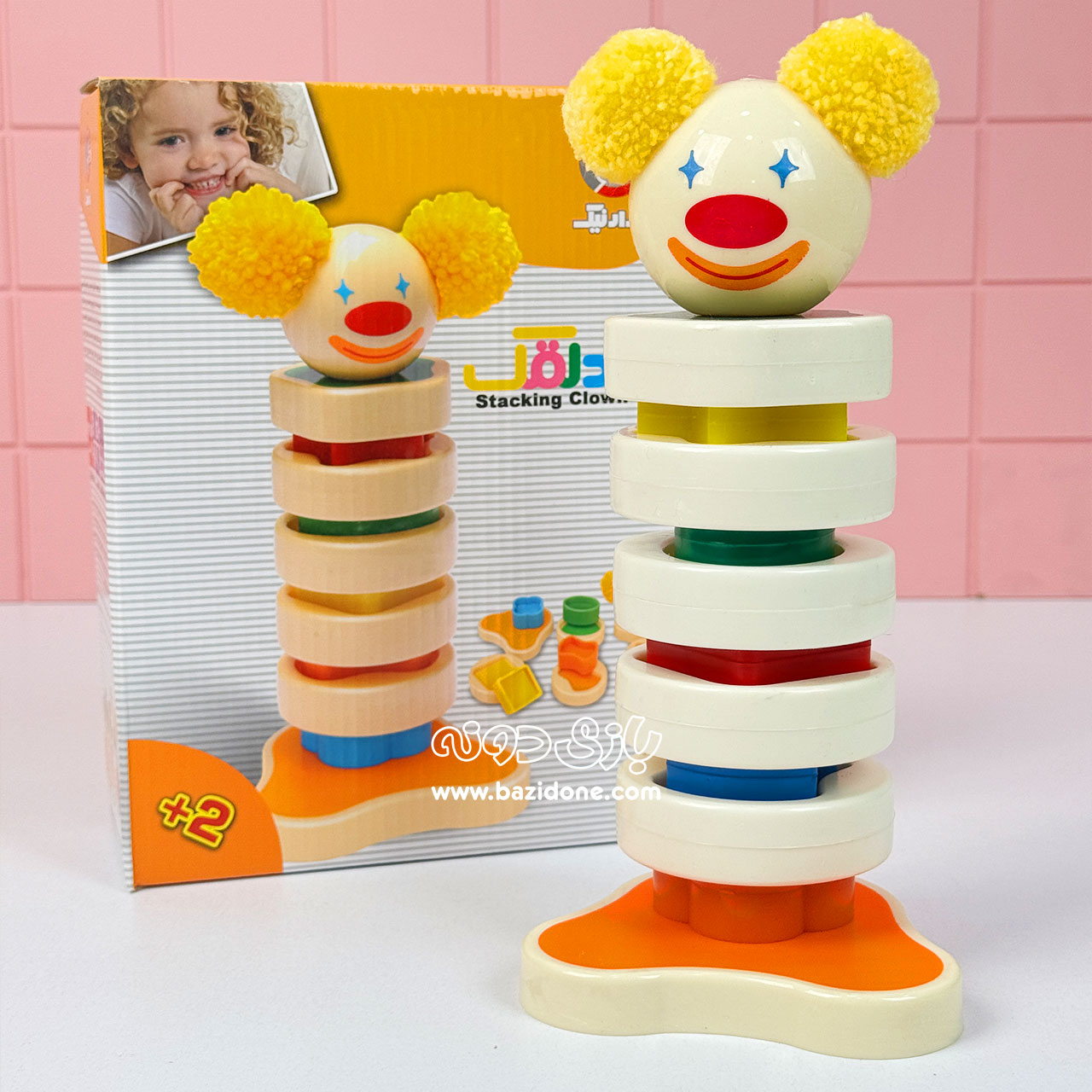 برج دلقک مناسب کودکان 18 ماه تا 4 ساله می باشد.این مجموعه تشکیل شده است از 5 قطعه رنگی و 5 قطعه دایره ای شکل که هر وجه آن از نظر رنگ و شکل مشابه یکی از قطعات رنگی می باشد.