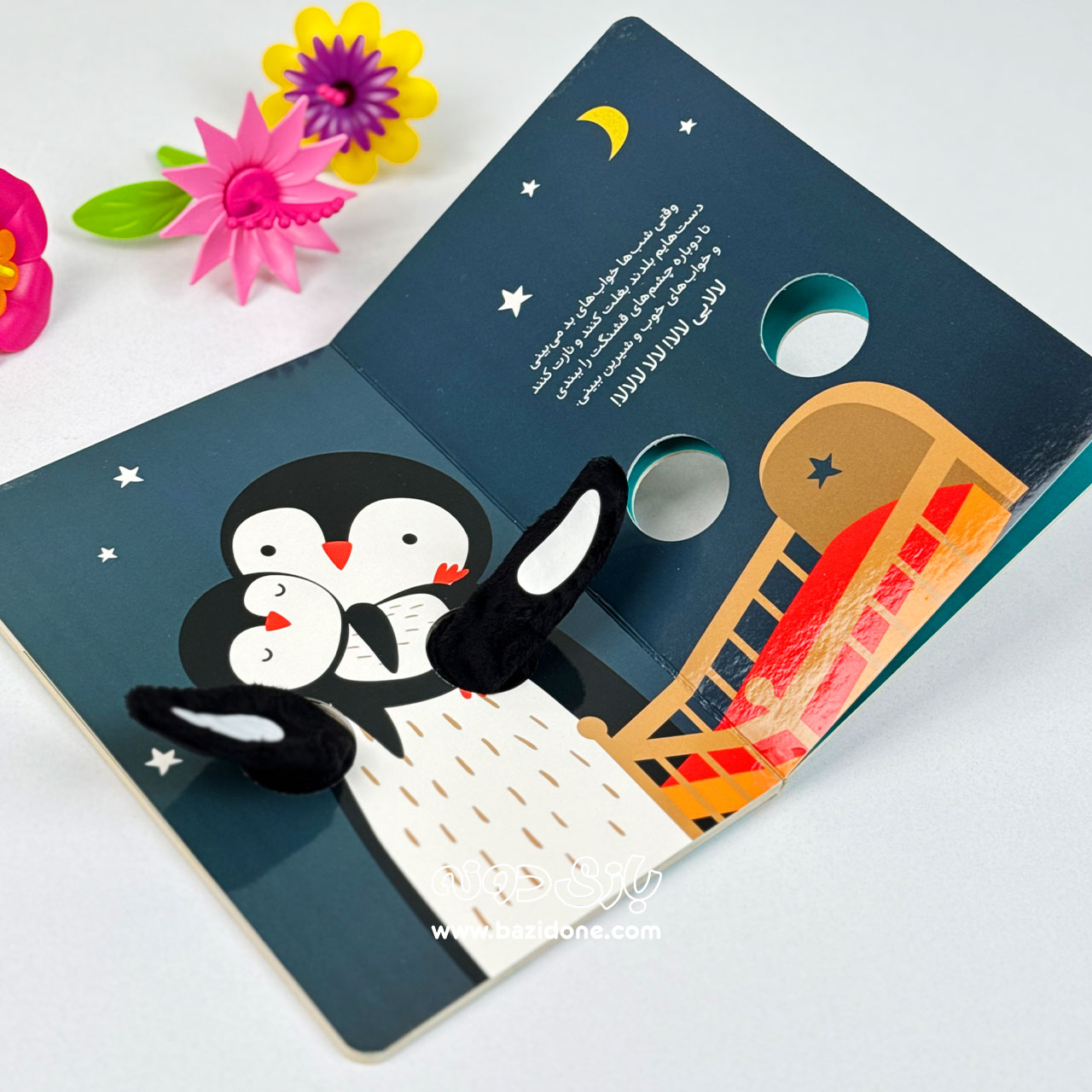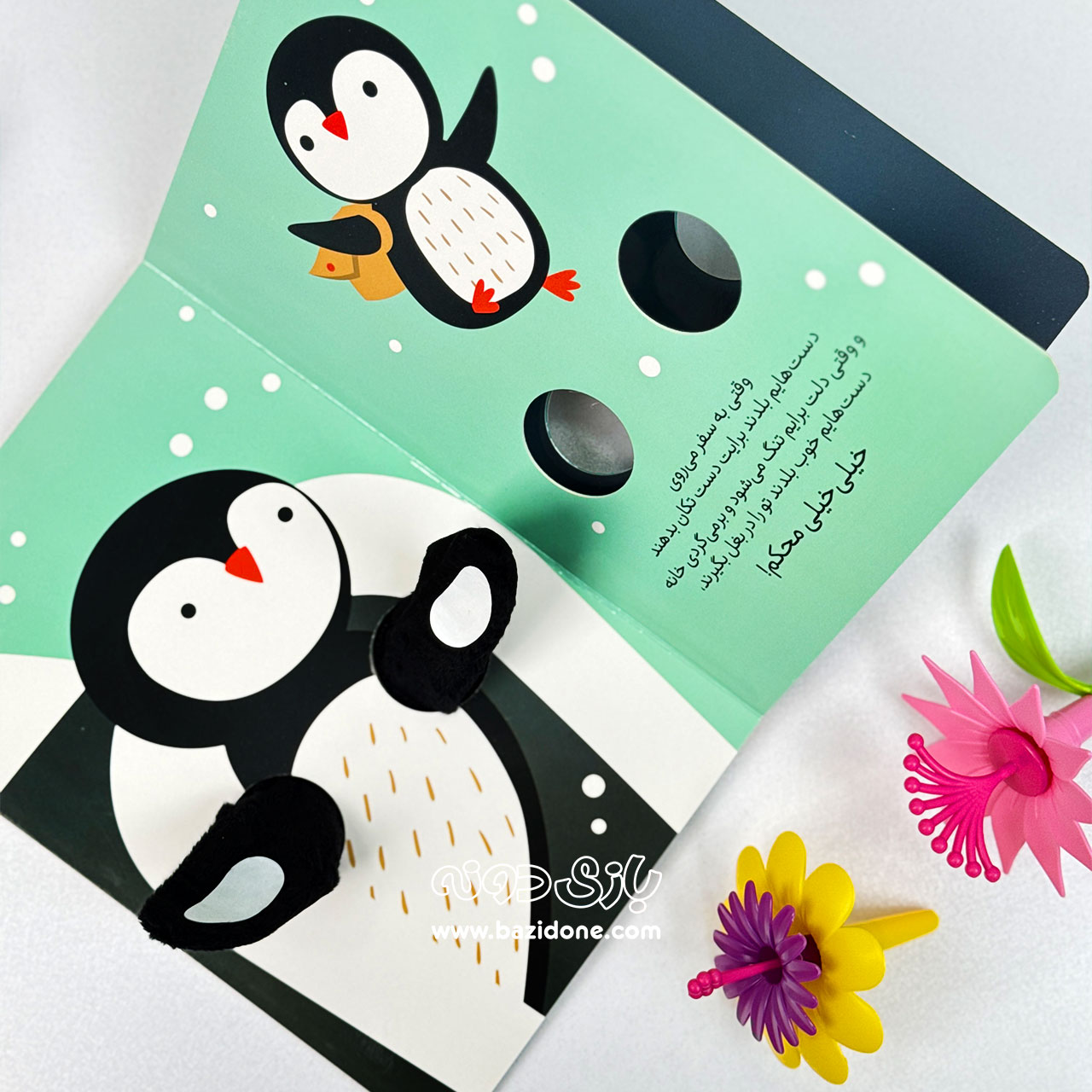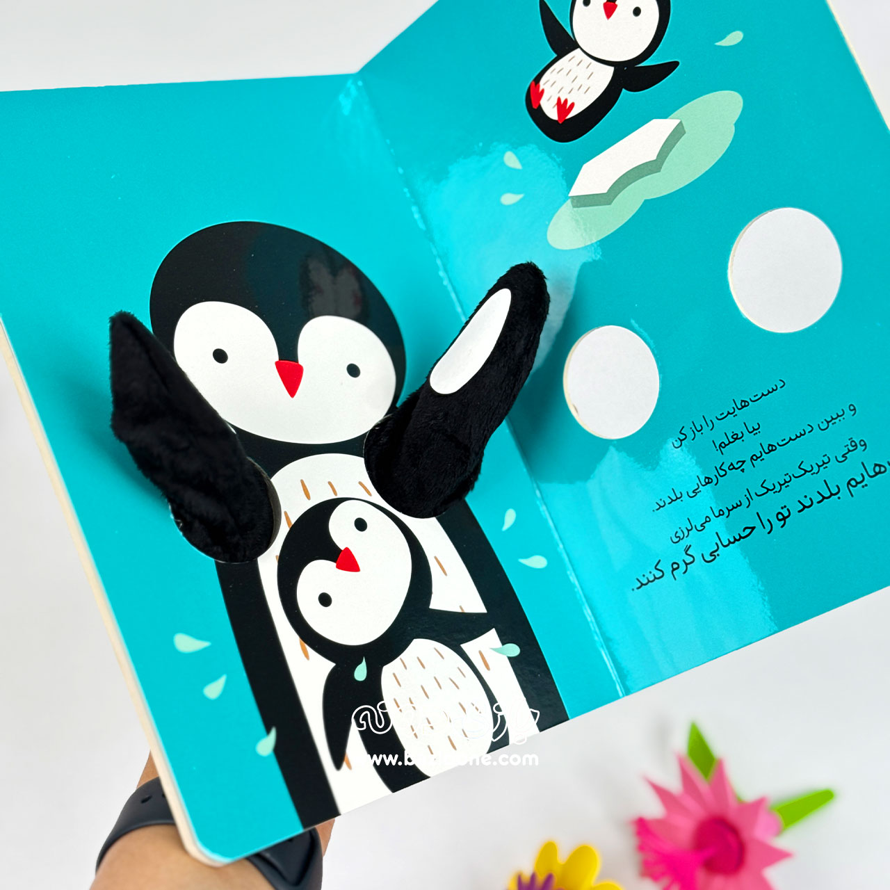 دست های نرم و پولیشی این پنگوئن بامزه برای بغل کردن و بازی کردن با کوچولوها عالیه! 😊 وقتی این کتاب رو برای کوچولوتون می خونید، باهاش بازی کنید، بغلش کنید، قلقلکش بدین و اون رو بخندونید. 😄 این لحظه ها قشنگ ترین و شیرین ترین لحظه های زندگی هستن. 💖 پس حسابی با کوچولوهاتون خوش بگذرونید! 🎉