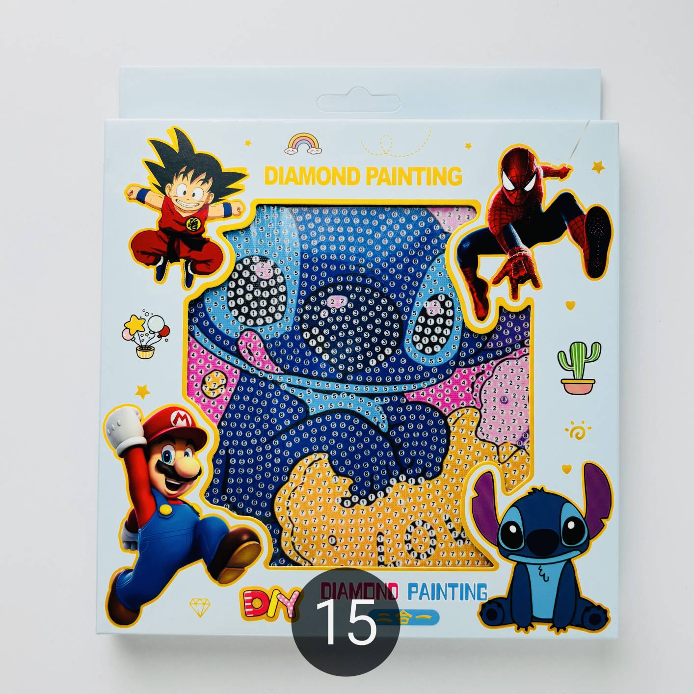 - الماسگذاری: با استفاده از قلم مخصوص، کودک یک الماس را برمیدارد و آن را روی شماره یا رنگ مشخص شده روی طرح میچسباند. هر الماس به راحتی روی جای خود میچسبد.