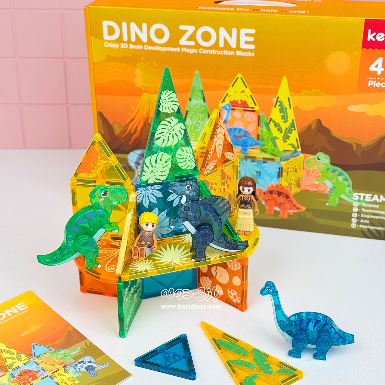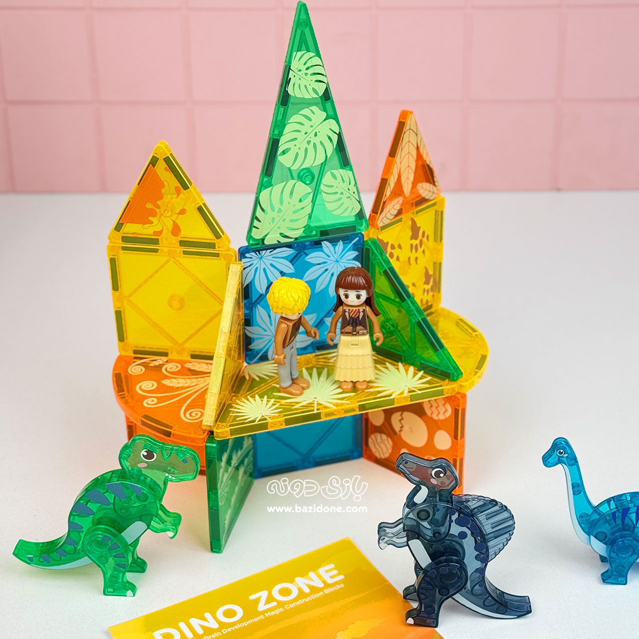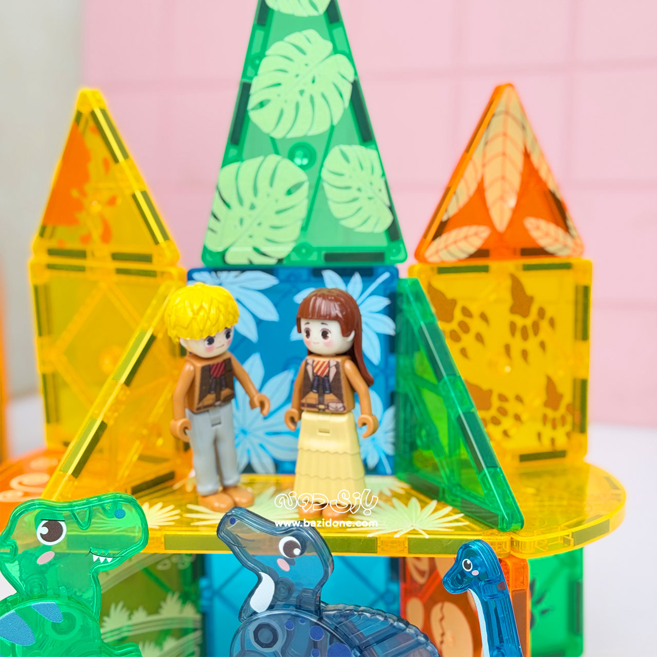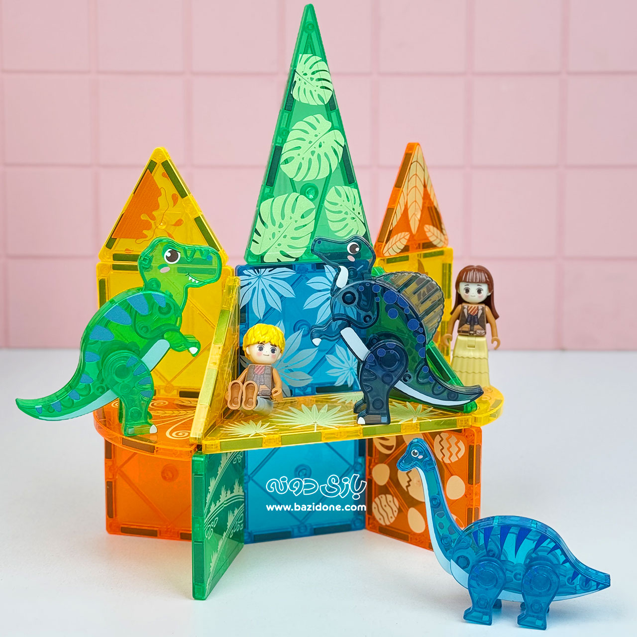 این مگنت تایلها یک سفر به دنیای پر رمز و راز دایناسورها رو برای فرزند شما فراهم میکنه. با قطعات مغناطیسی که طرح دایناسورهای مختلف مثل تیرکس، تریسراتوپس و… رو دارن، کودک شما میتونه زیستگاه دایناسورها رو بسازه، خونههای رنگی طراحی کنه و ساعتها غرق در بازی و خیالپردازی بشه. 🦖