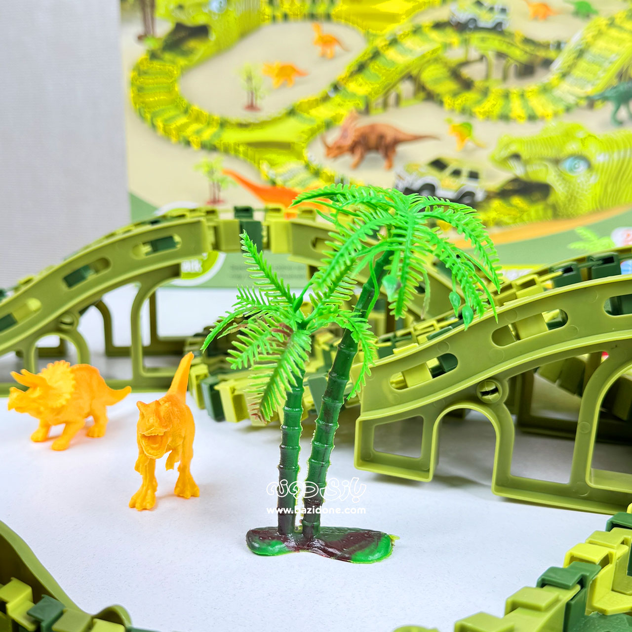 ریسینگ بهشت دایناسورها، یه مجموعه بازی فوقالعاده هیجانانگیز و خلاقانه برای کوچولوهای عاشق دایناسور و ماشینه! 🦕🚗 این اسباببازی جذاب، دنیای ماقبل تاریخ رو با هیجان مسابقه ماشینها ترکیب میکنه و ساعتها سرگرمی بیوقفه رو برای دلبند شما فراهم میآره. کودک شما میتونه ریلهای پرپیچوخم رو بسازه، ماشینها رو روی اونها به حرکت دربیاره و از کنار دایناسورهای غولپیکر و بامزه عبور کنه! این فقط یه بازی نیست، یه سفر خیالی به دوران ژوراسیکه! 🌿