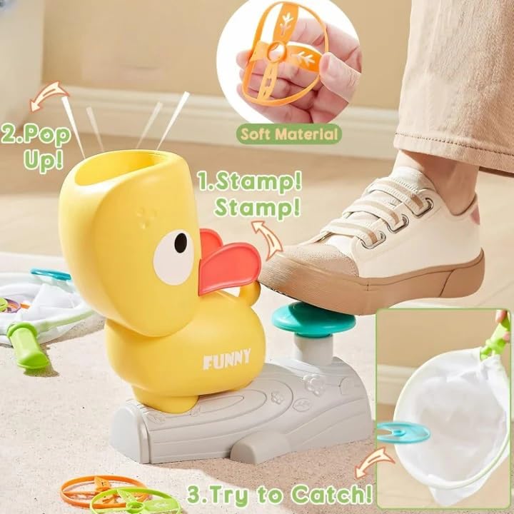 برای استفاده از این اسباببازی، ابتدا بشقابهای پرنده را در قسمت بالای ماشین قرار دهید. 🛸 سپس کودک میتواند با پا یا دستش، پدال را فشار دهد تا بشقابها به هوا پرتاب شوند. 🤸♀️ میتوانید با دوستان خود مسابقه بگذارید و ببینید بشقاب پرنده چه کسی بالاتر میرود! 🏆