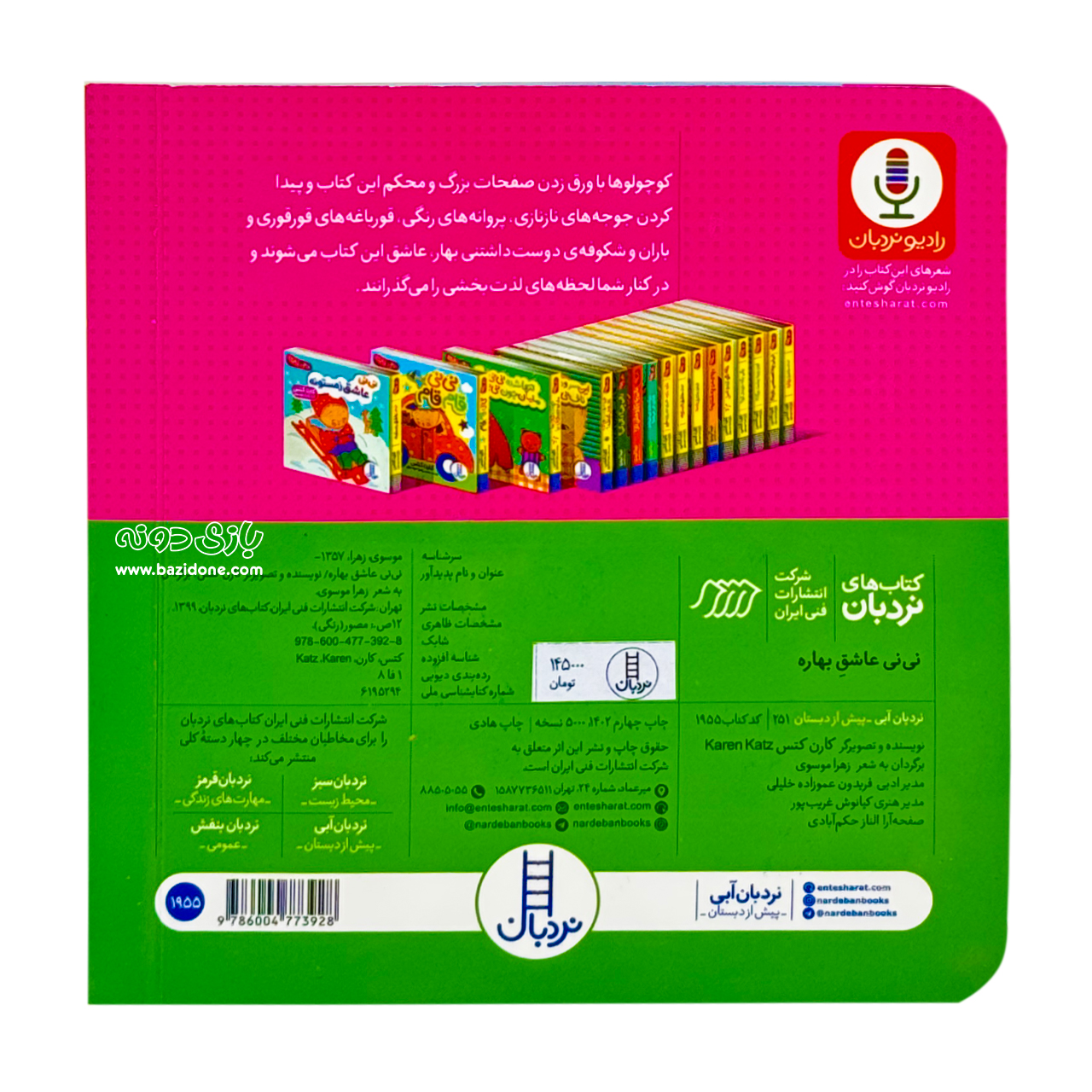کوچولوها با ورق زدن صفحات بزرگ و محکم این کتاب و پیدا کردن جوجه‌های نازنازی، پروانه‌های رنگی، قورباغه‌های قورقوری و باران و شکوفه‌ی دوست‌داشتنی بهار، عاشق این کتاب می‌شوند و کنار شما لحظه‌های لذت‌بخشی را می‌گذرانند.