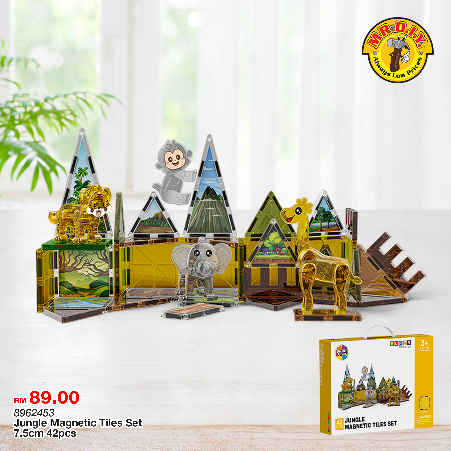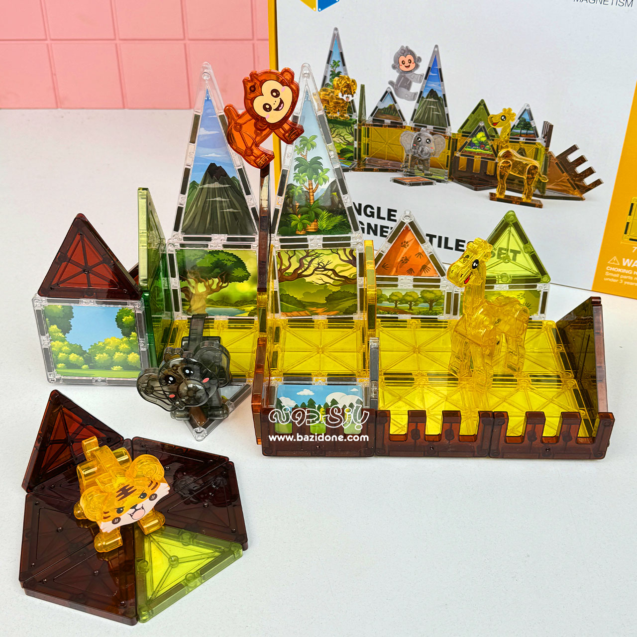 مگنت تایل حیوانات جنگل، یک اسباببازی ساختنی فوقالعاده است که دنیای جذاب حیوانات را با خلاقیت و رنگ ترکیب میکند. این مجموعه 42 قطعهای شامل کاشیهای مغناطیسی با طرحهای زیبای حیوانات جنگل مثل شیر، ببر، زرافه و… به همراه قطعات هندسی رنگارنگ است. این کاشیها به راحتی به هم میچسبند و به کودکان اجازه میدهند تا انواع سازههای دو و سه بعدی را بسازند و در کنار آن با دنیای شگفتانگیز حیوانات آشنا شوند. 🦒🐘🦓