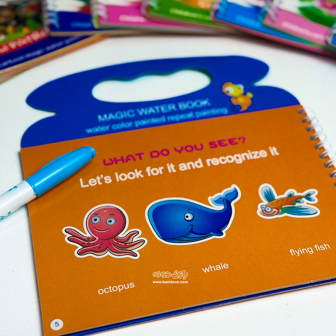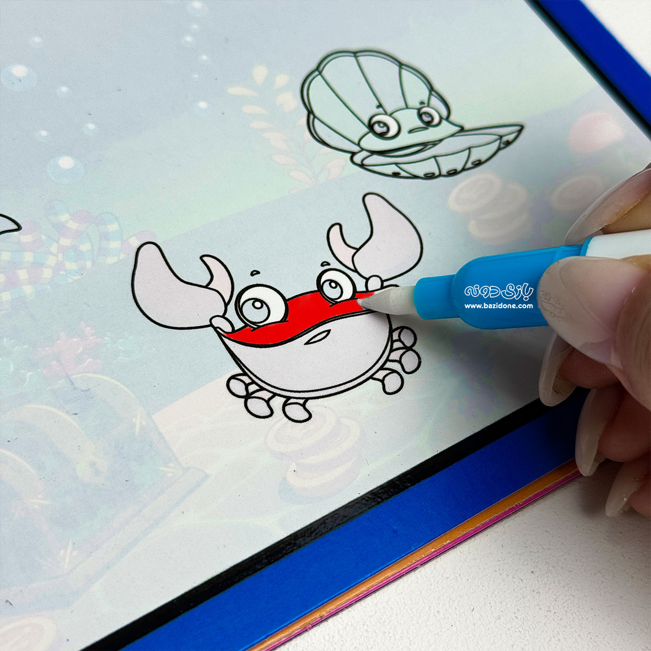- خلاقیت و تخیل 🌈: این کتاب به بچهها کمک میکنه تا خلاقیت و تخیلشون رو در دنیای زیر آب پرورش بدن، بدون اینکه نگران کثیف شدن لباس یا اطراف با رنگ باشن.