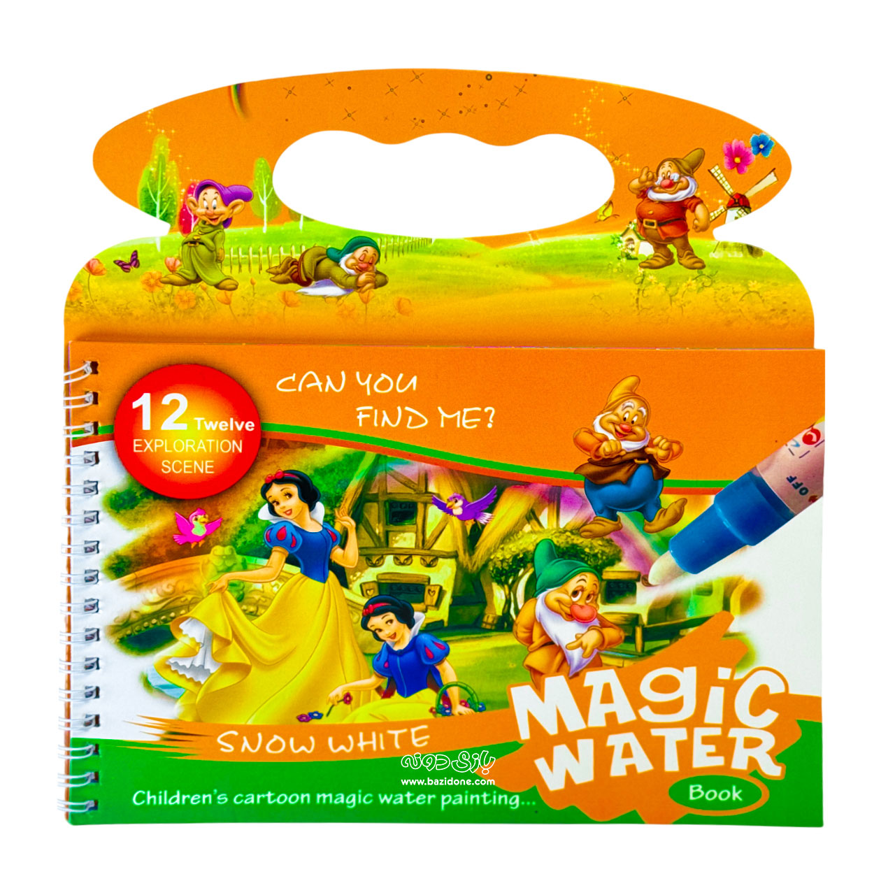 کتاب جادویی رنگ آمیزی با آب یک بازی هنری است. این کتاب کاملا بهداشتی بوده و کثیف کاری های نقاشی با ماژیک را ندارد درون بسته ی مجیک واتر بوک یک ماژیک است که می بایست داخل آن آب ریخته شود.