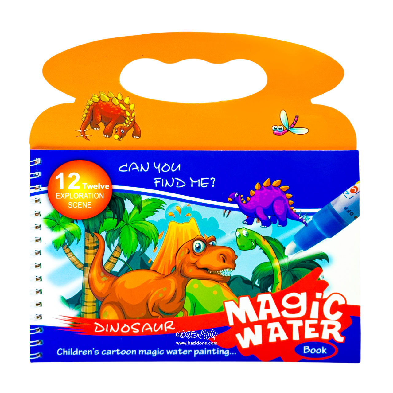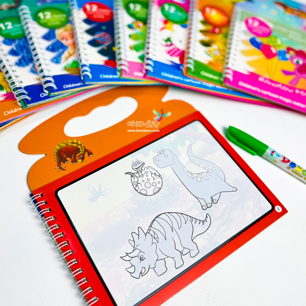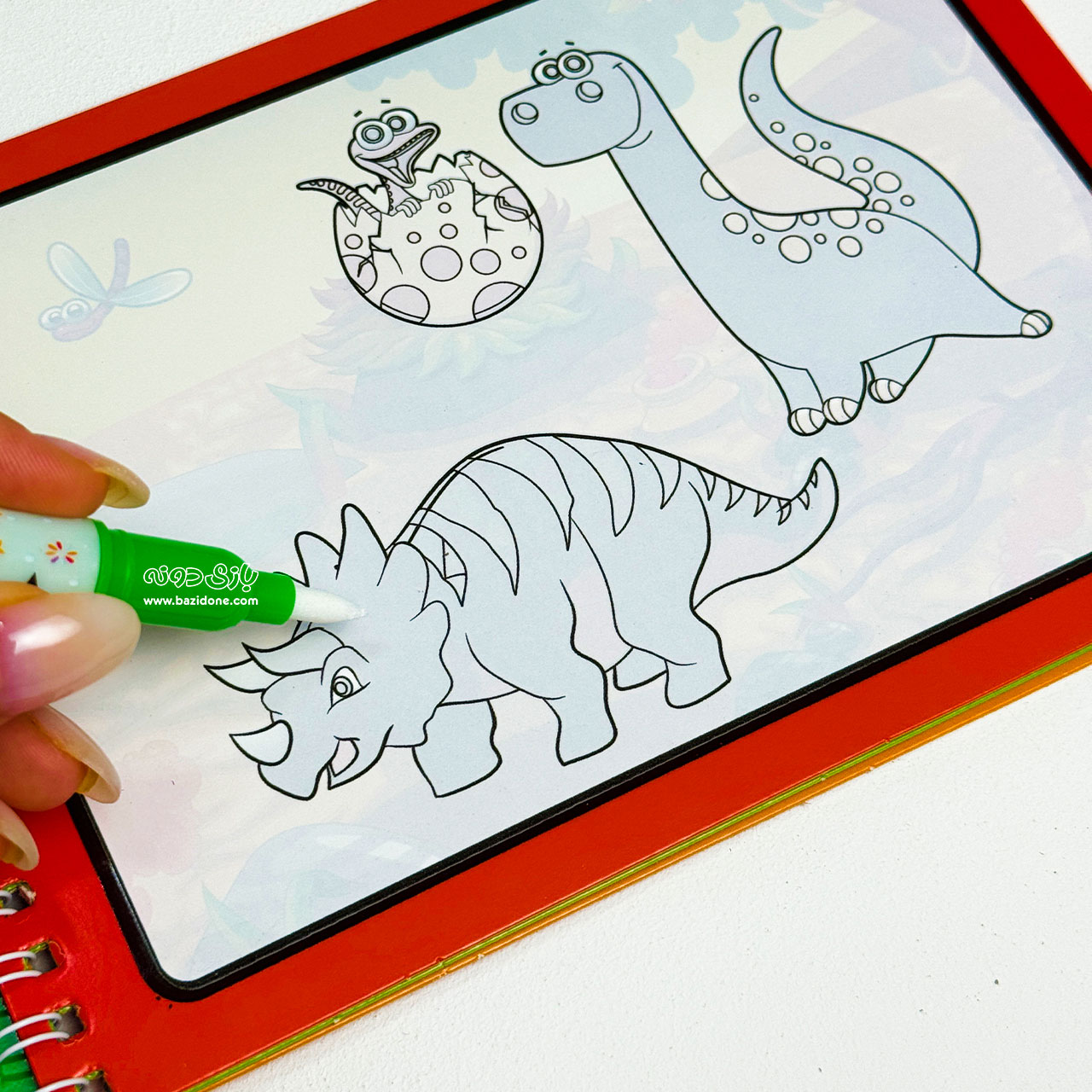 کتاب جادویی دایناسورها 🦖 یه کتاب فوقالعاده جذاب و سرگرمکننده برای کوچولوهای عاشق نقاشی و دایناسورهاست! 🦕 با این کتاب جادویی، 🪄 بچهها میتونن با یه ماژیک بیخطر 💧 که فقط با آب کار میکنه، یه عالمه دایناسور نقاشی کنن و از دیدن رنگهای جادویی که ظاهر میشن لذت ببرن! 😊