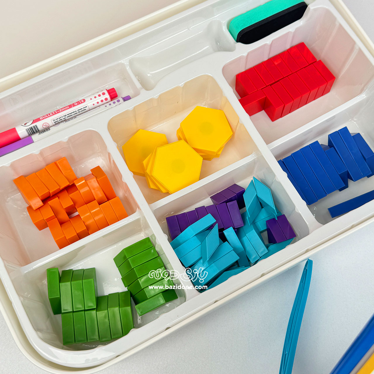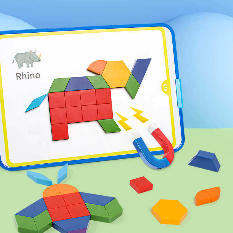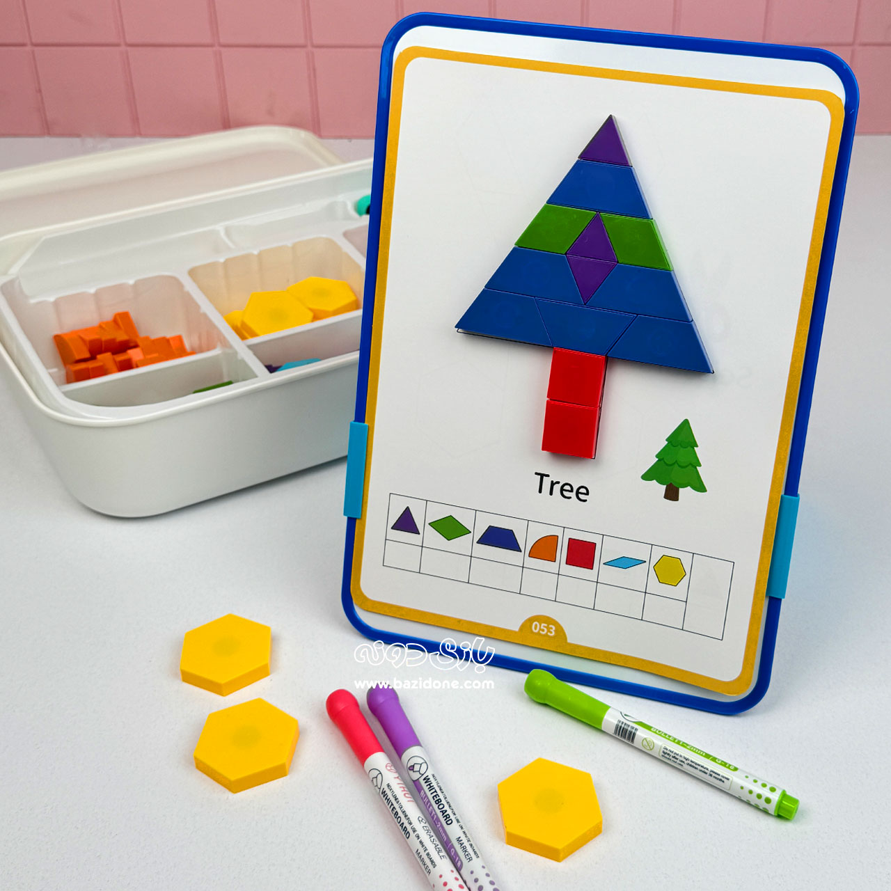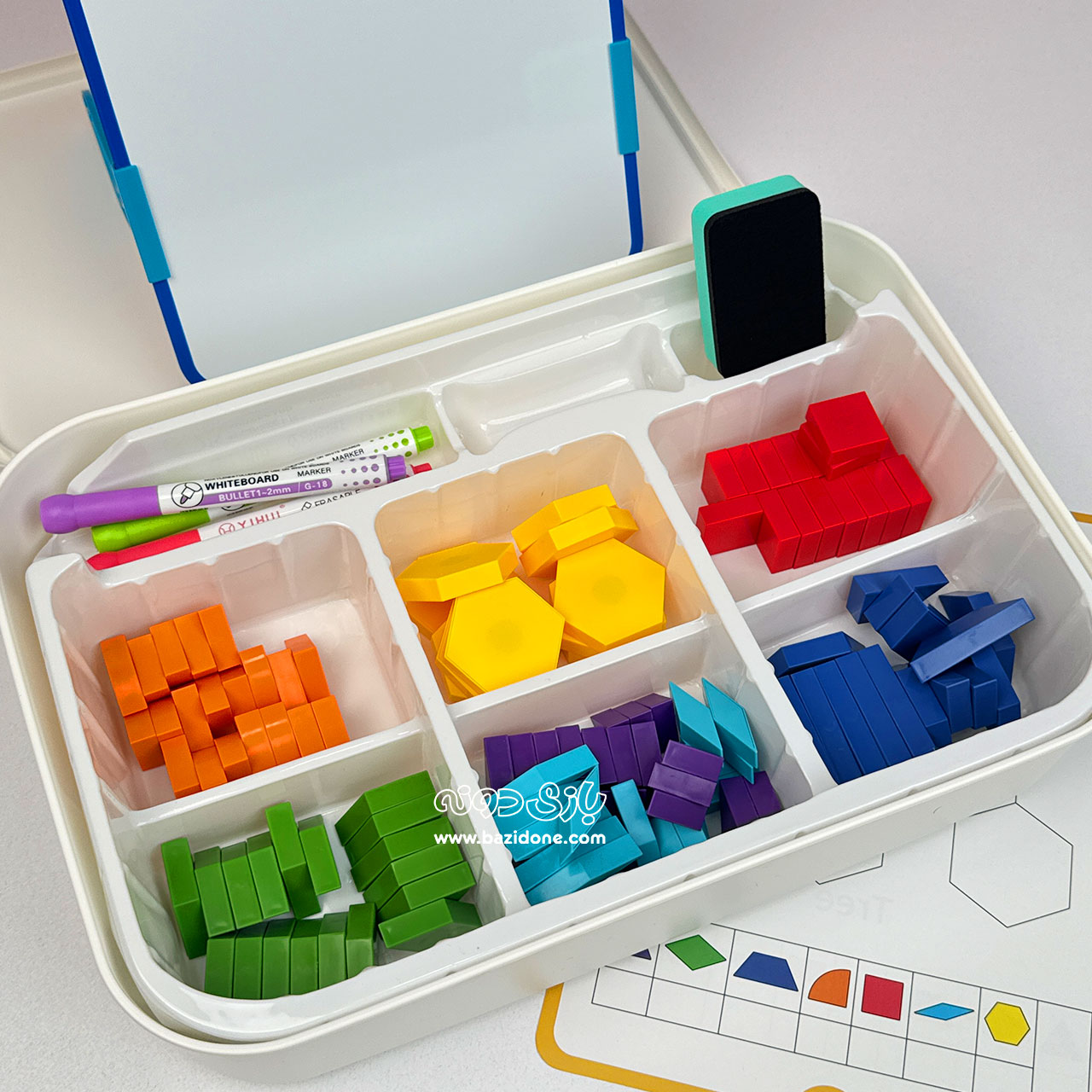 - آموزش عملی مفاهیم پایه هندسه و ریاضی: کودک با اشکال پایه هندسی (مثلث، مربع، ذوزنقه و…)، روابط بین آنها، مفهوم تقسیم یک شکل بزرگ به قطعات کوچک و تقارن آشنا میشود. این یادگیری عملی، مفاهیم انتزاعی ریاضی را ملموس میسازد.