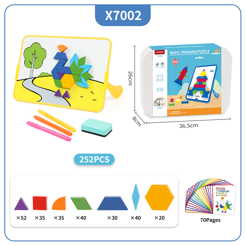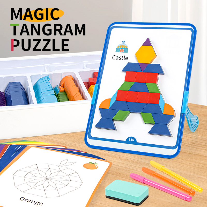 آنچه باکس پازل تنگرام جادویی مگنتی را از سایر پازلها متمایز میکند، وجود یک تخته وایتبرد مگنتی در آن است که قابلیتهای بازی را دوچندان میکند: