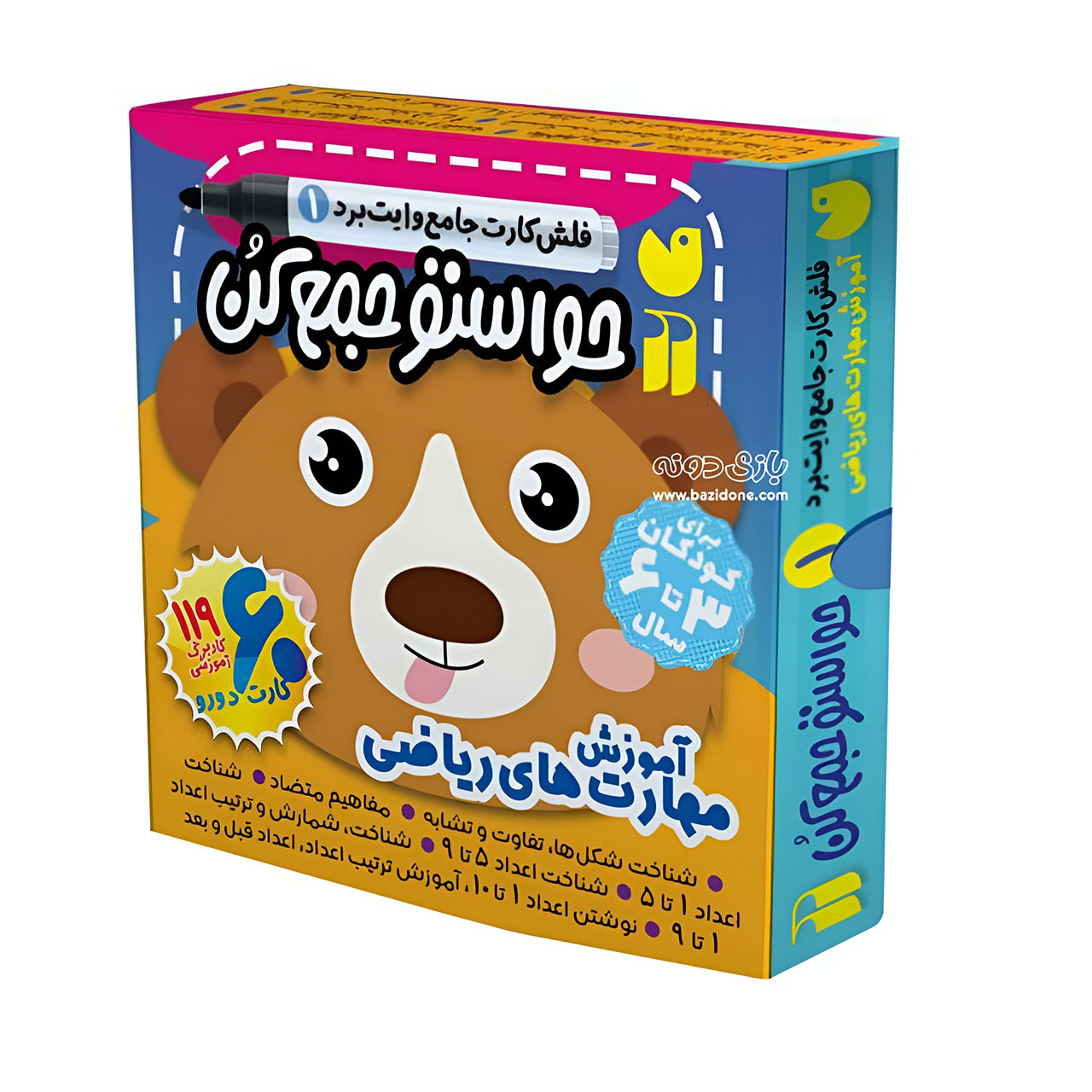 در پک فلش کارت وایت بردی حواستو جمع کن جامع 1 کودکان با مفهوم شمارش از یک تا ده، دسته بندی و طبقه بندی، تطبیق و تطابق؛ جدول های سودوکوی ساده، ارتباطات، درک فضایی، اشکال هندسی و … آشنا می شوند. حواستو جمع کن جامع 1(مهارت های ریاضی) را برای تقویت مهارت های ریاضی برای کودکان بالای 3 سال به شما پیشنهاد می کنیم.