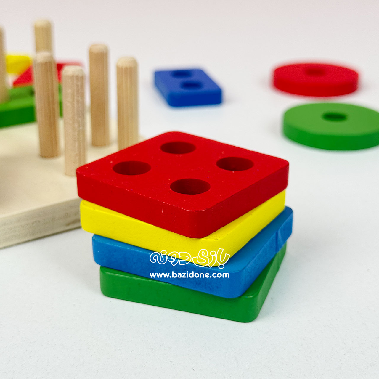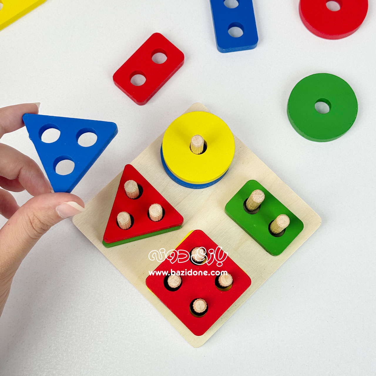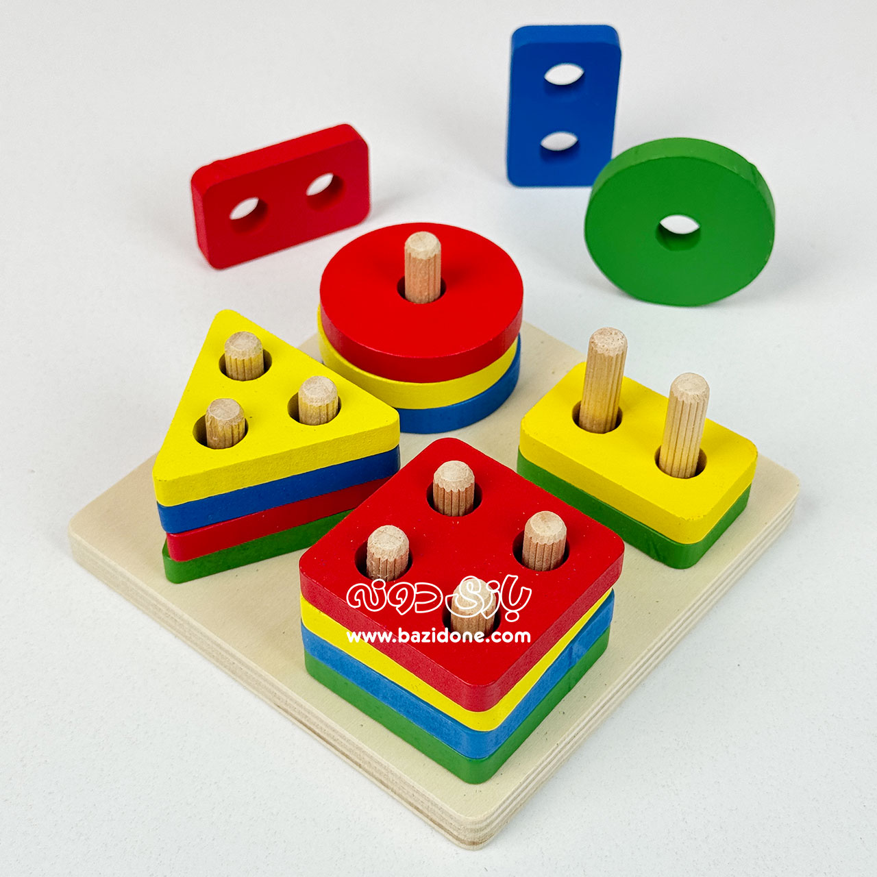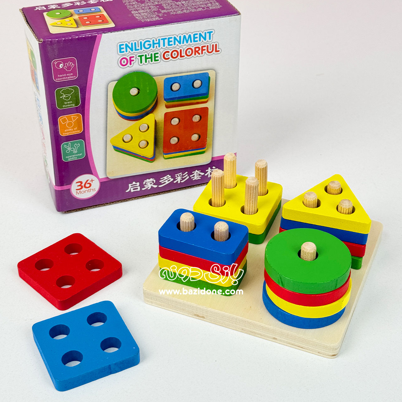 بازی مونته سوری جایگذاری اشکال مدل 4 ستون یک مجموعهی مناسب برای آموزش رنگ، اشکال هندسی و شمارش اعداد به فرزندان دلبندتان است.علاوه بر این، شما میتوانید از این مجموعهی چوبی برای افزایش هماهنگی میان دست و چشم کودکان بالای سه سال استفاده کنید.