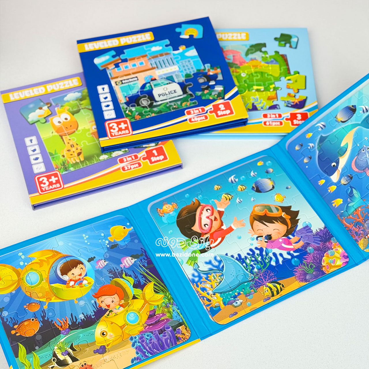 کتاب پازل مگنتی چند مرحلهای، یک اسباببازی فکری و ساختنی بینظیر است که رشد کودک شما را قدم به قدم همراهی میکند! 📈 این مجموعه در قالب یک کتاب زیبا طراحی شده که در آن چندین پازل مختلف با سطح دشواری متفاوت وجود دارد. کودک میتواند با پازلهای ساده و با تعداد قطعات کمتر شروع کند و به مرور که مهارتش بیشتر شد، به سراغ پازلهای پیچیدهتر برود. تمامی قطعات این پازل مغناطیسی هستند و به راحتی روی صفحه کتاب میچسبند. این کتاب یک ابزار عالی برای آموزش و سرگرمی است که میتواند برای سالها همراه کودک شما باشد. 💖