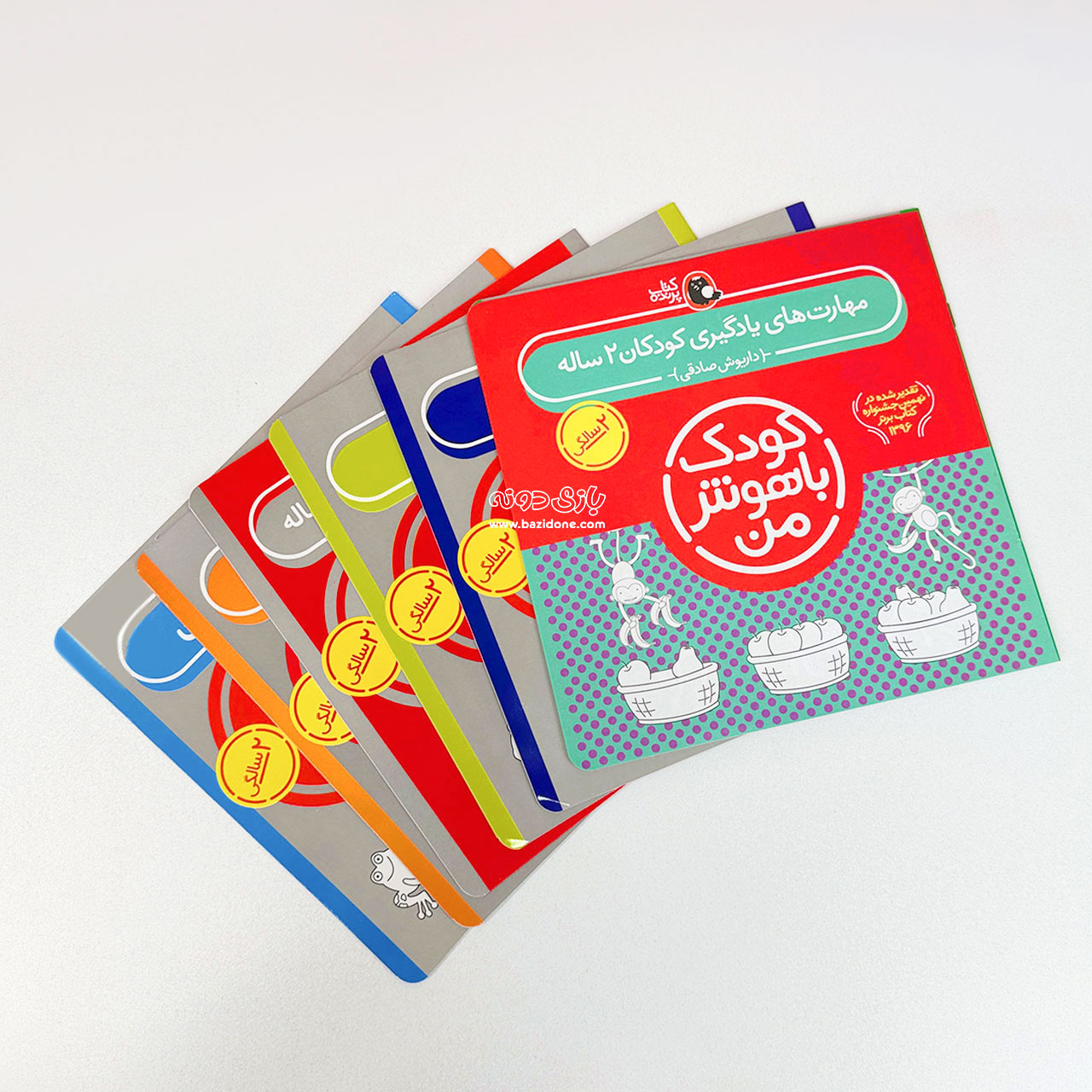 مجموعه ی کتاب کودک باهوش من بر اساس جدیدترین منابع علمی و روانشناسی برای کودکان 2 سال تهیه شده است. تمرینها و بازیهای این مجموعه به صورت هدفمند توانایی و مهارتهای شناختی و ذهنی، مهارت شنیدن و صحبت کردن، یادگیری مفاهیم ساده ی ریاضی، مهارت دقت و توجه، هماهنگی چشم و دست کودکان را افزایش می دهد.