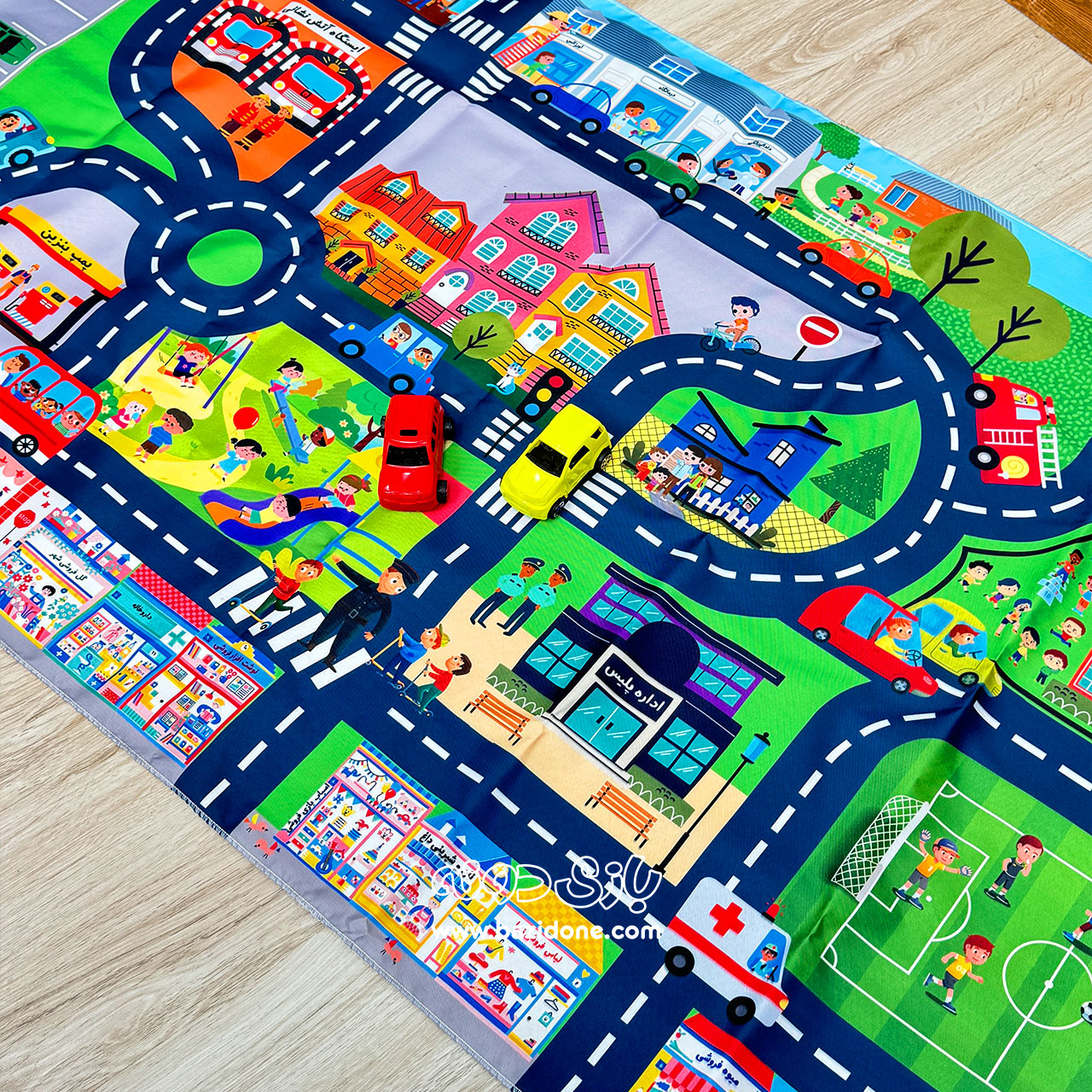 - جنس پارچهای نرم و ایمن: این شهر از پارچهای با کیفیت و با دوام ساخته شده که برای پوست حساس کودکان کاملاً ایمن است و هیچ آسیبی به آنها نمیرساند.