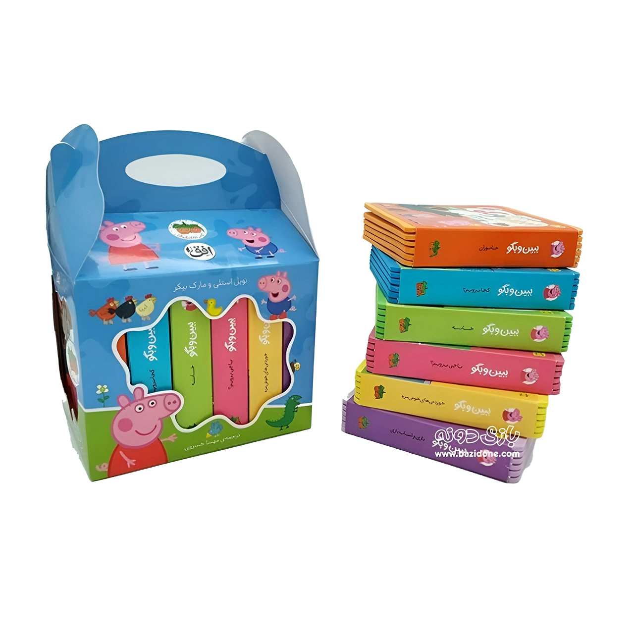 مجموعه ۶جلدی دنیای پپا با عنوان «ببین و بگو» یک پکیج شگفتانگیز برای کوچولوهای شماست که نه تنها آنها را با داستانهای جذاب پپا و دوستانش سرگرم میکند، بلکه با فعالیتهای فکری و آموزشی ساده، آنها را به دنیای شگفتانگیز زبان انگلیسی و مفاهیم روزمره دعوت میکند. ✨😍