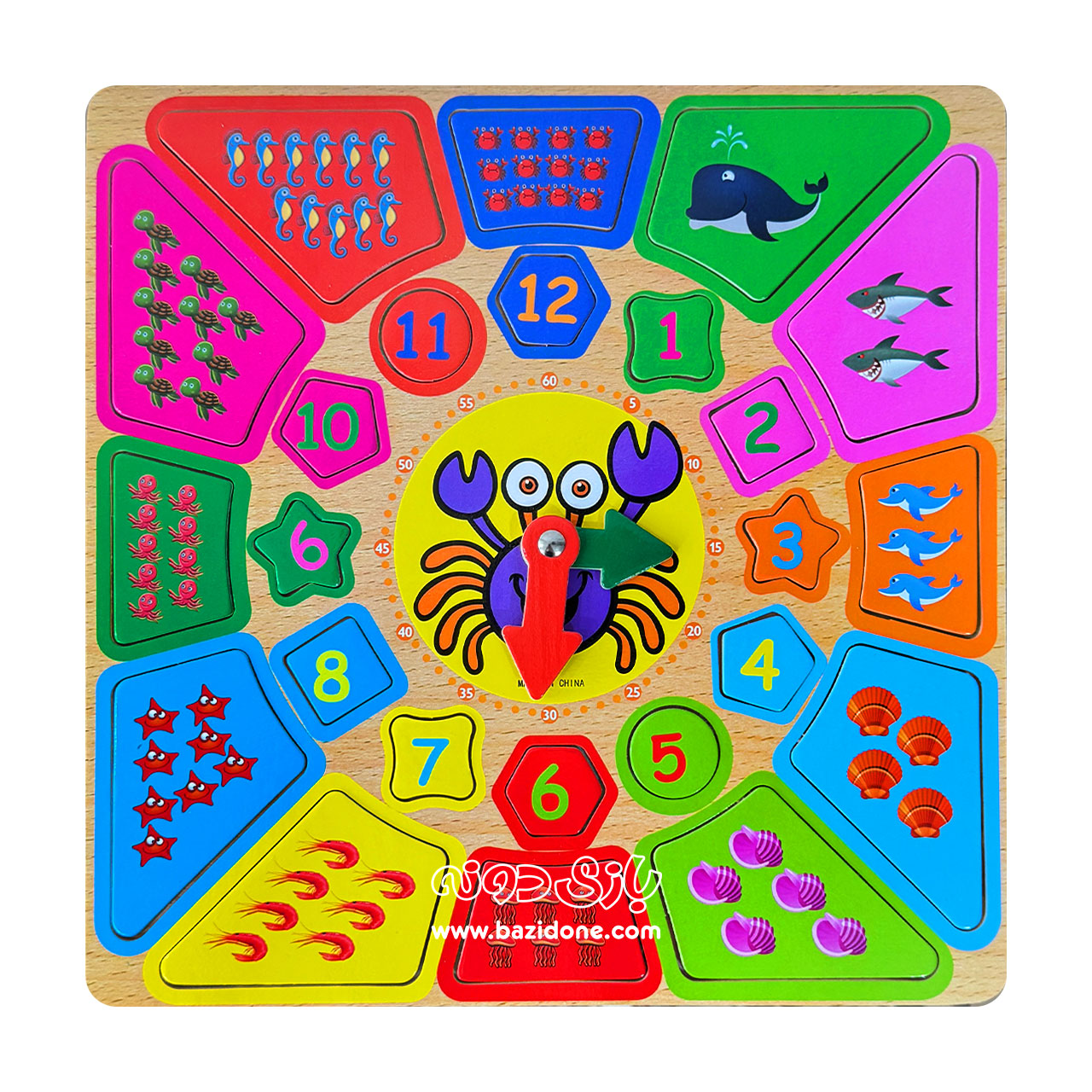 - پازل: قطعات این ساعت، علاوه بر عدد، شکلهای مختلف هم دارن. بچهها باید این شکلها رو با جای خودشون روی ساعت تطبیق بدن. این کار به تقویت مهارتهای حرکتی ظریف و هماهنگی چشم و دستشون کمک میکنه.🧩