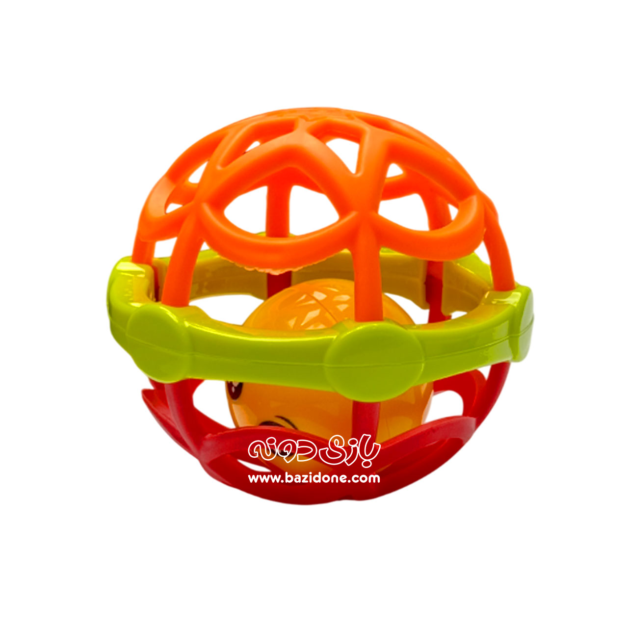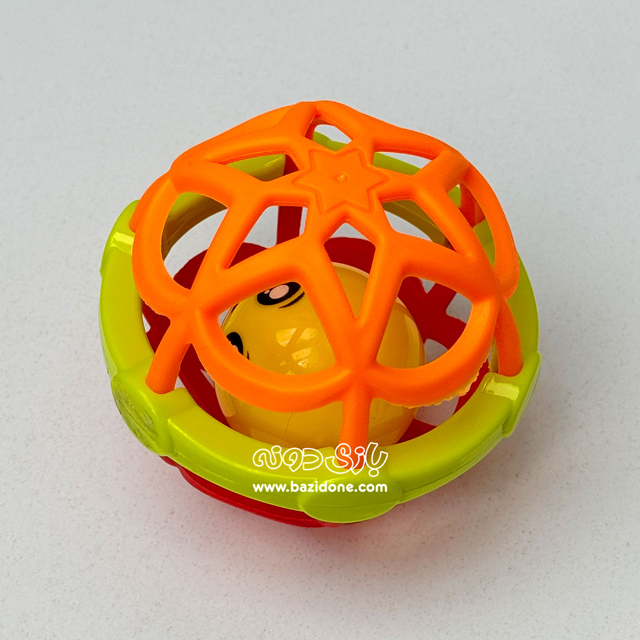 - رنگارنگ و جذاب! 🌈 با رنگهای شاد و زندهای مثل نارنجی، آبی، سبز و زرد که در تصویر میبینید، این توپ حسابی چشم کوچولوتون رو به خودش جذب میکنه و به تقویت حس بیناییش کمک میکنه.