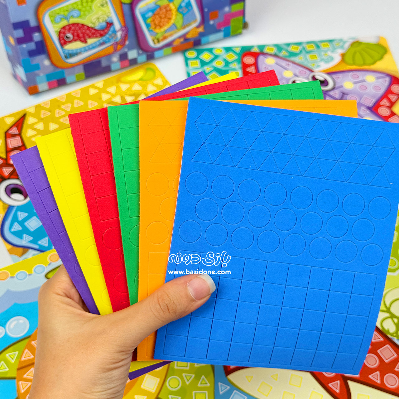 - کاشیهای فومی رنگیرنگی، خودچسب هستن و به راحتی روی طرحها چسبونده میشن. 😊