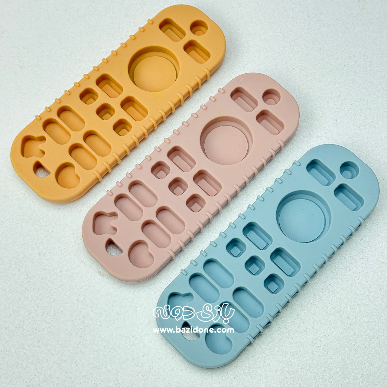 در قسمت پشتی این دندانگیر، حفرههایی با اشکال هندسی وجود دارد که به تقویت حس لامسه کودک کمک میکند.