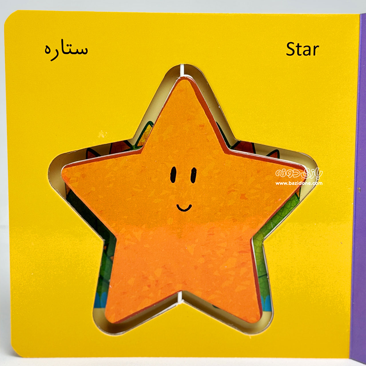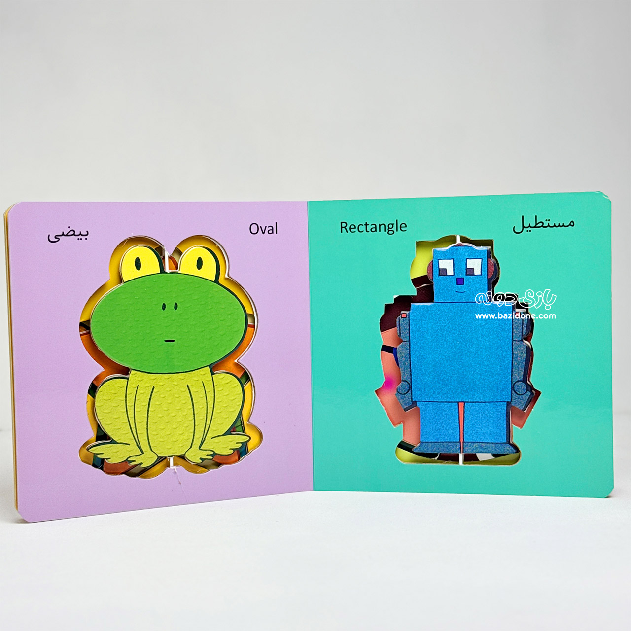 این کتاب مقوایی، به صورت دوزبانه (فارسی-انگلیسی) آشنایی با اشکال هندسی را برای کودک آسان و لذتبخش کرده است.