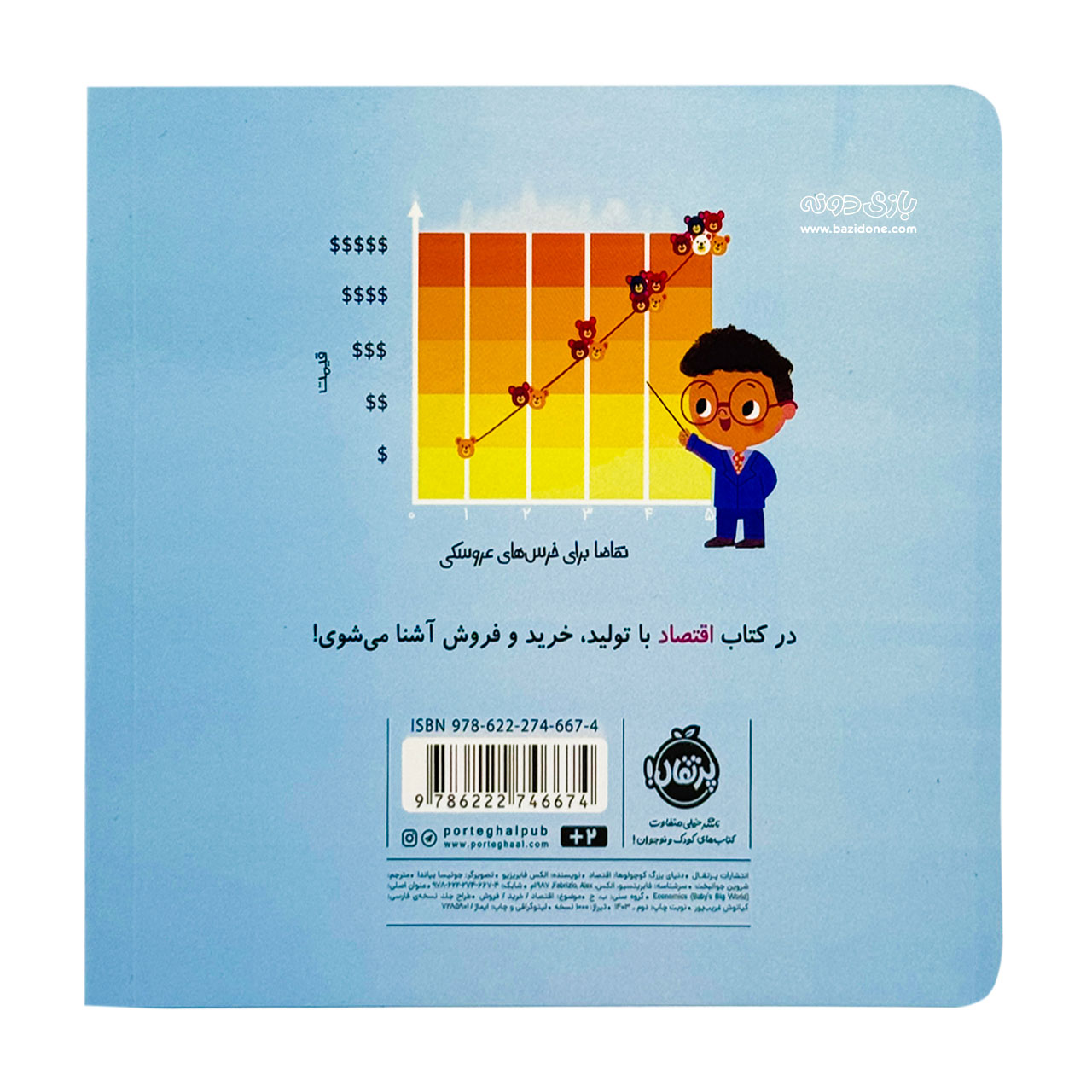 تا حالا به این موضوع فکر کرده‌اید که چطور می‌توان مفهوم پیچیده‌ای مثل اقتصاد را برای بچه‌ها توضیح داد؟ در کتاب اقتصاد از مجموعه «دنیای بزرگ کوچولوها» مفاهیم اصلی و پیچیده‌ی اقتصادی، با زبانی بسیار ساده برای کودکان توضیح داده می‌شود. در این کتاب کتاب دنیای بزرگ کوچولوها اقتصاد تصویری، مسائل مهمی مثل عرضه و تقاضا، چگونگی ساخت محصولات و هزینه تولید آن‌ها به کمک تصویرهای جذاب شرح داده می‌شود. این کتاب دنیای بزرگ کوچولوها اقتصاد برای کودکان، به کمک خرس‌های عروسکی، به این سؤالات پاسخ می‌دهد: هر خرس عروسکی چطور ساخته می‌شود؟ هزینه ساخت آن چطور تامین می‎شود؟ و فروشگاه‌ها چطور آن را می‌فروشند؟