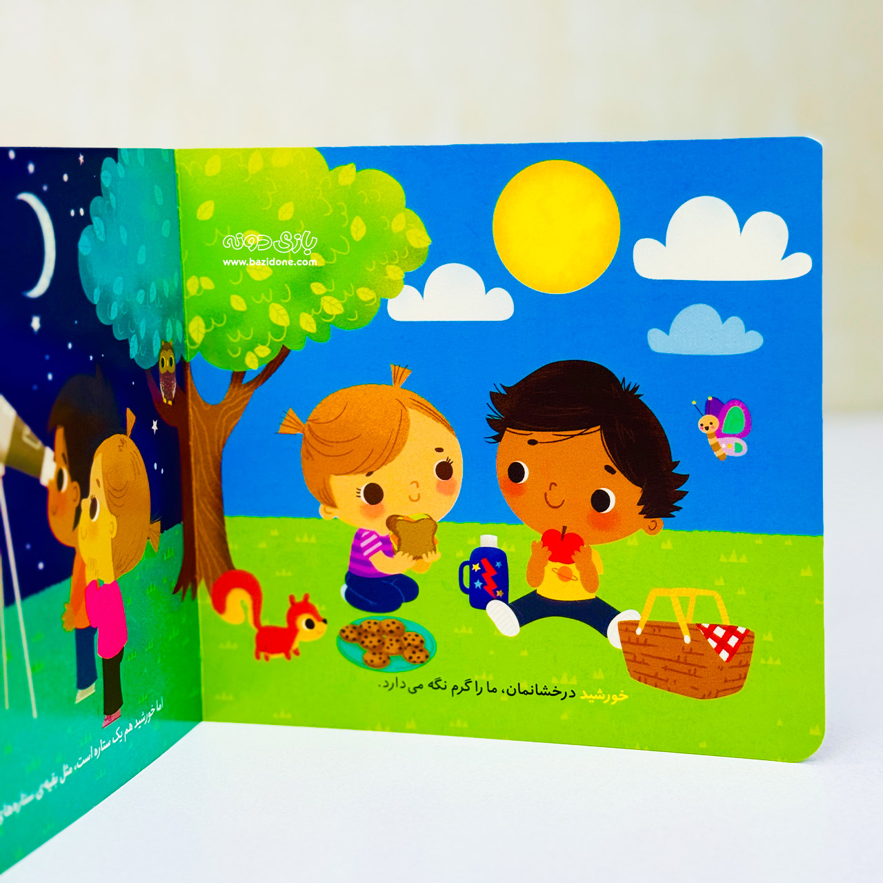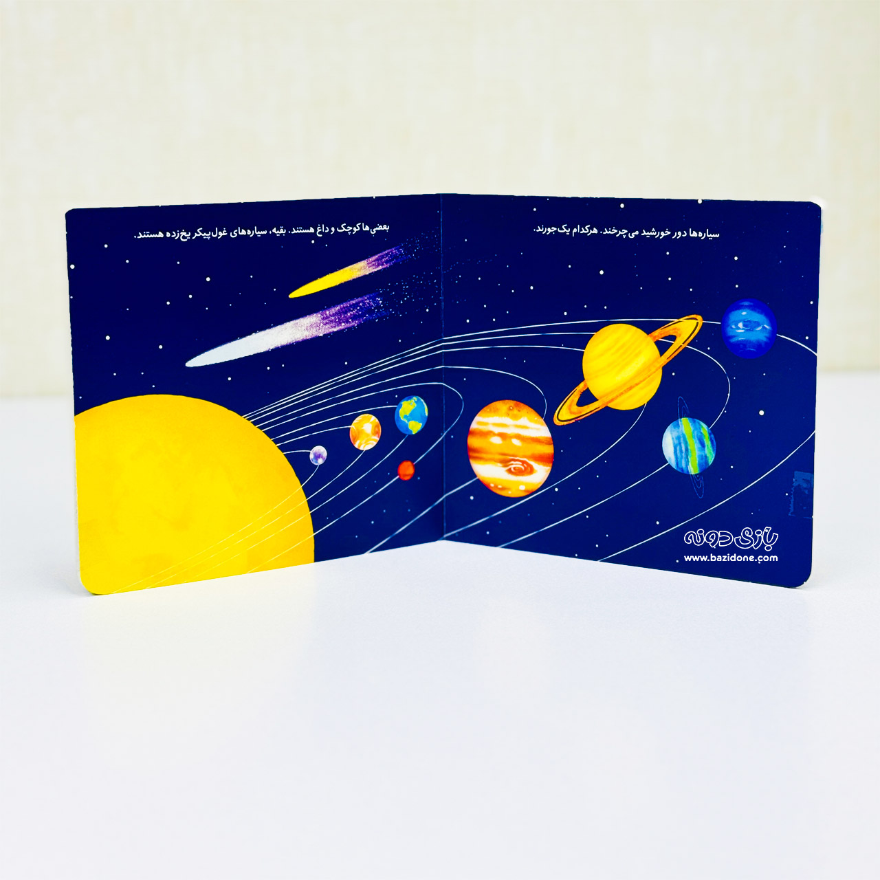 - آشنایی با شگفتیهای کیهان: تو این کتاب، نینیها با مفاهیم کلیدی مثل خورشید ☀️، ماه 🌕، ستارهها ✨ و سیارات 🪐 آشنا میشن. اونا یاد میگیرن که سیارات چقدر از زمین فاصله دارن و چطور دور خورشید میچرخن! 💫