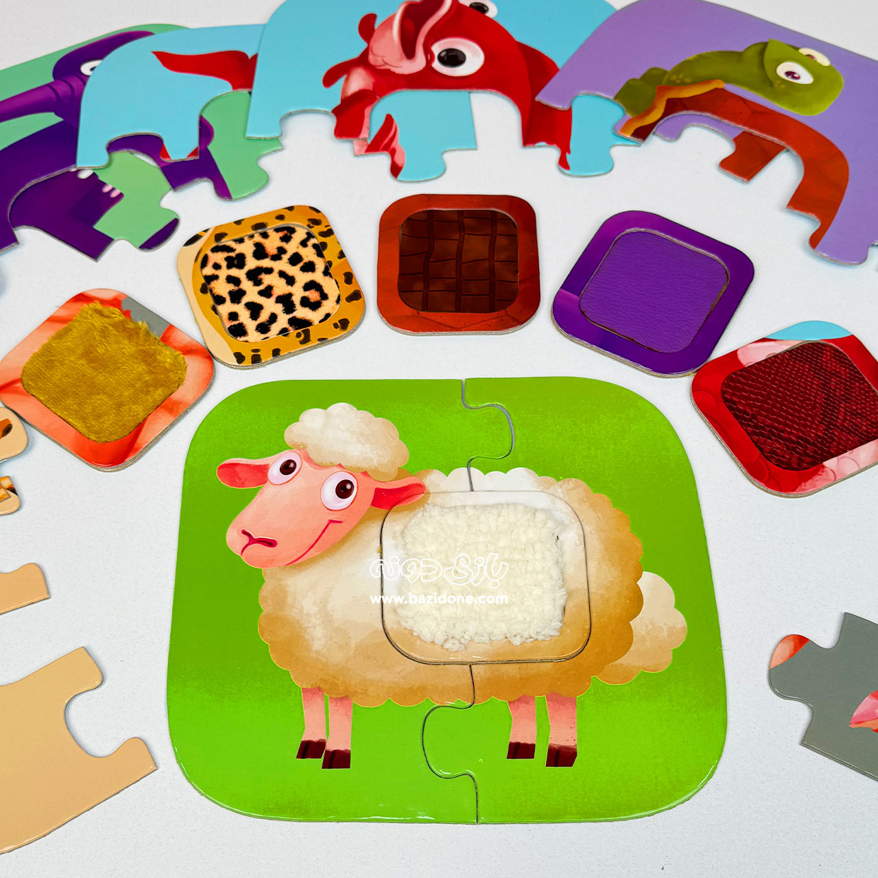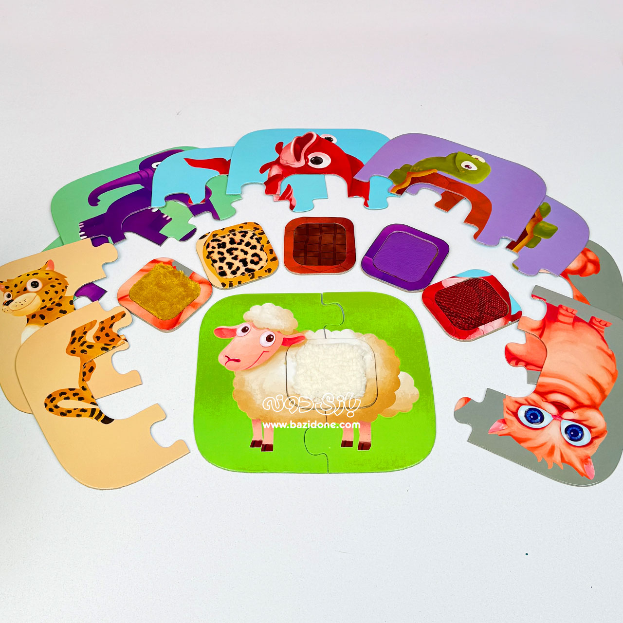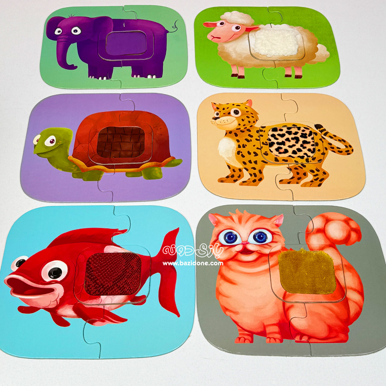 پازل لمسی حیوانات یه مجموعه پازل جلد سخته که از مقوای ضخیم ساخته شده و مهم ترین مزیت اون تعاملی بودنشه .