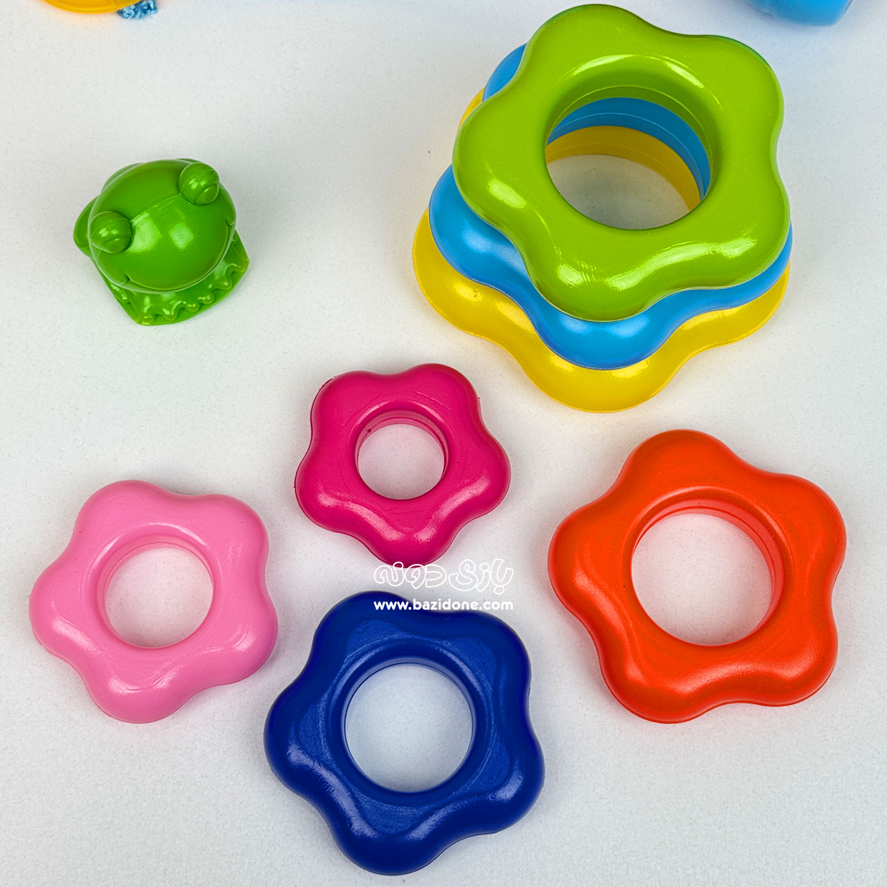 بازی با این حلقه هوش بسیار ساده و در عین حال آموزنده است. کودک میتواند حلقهها را به ترتیب از بزرگ به کوچک روی میله منعطف قرار دهد. طراحی خاص میله به او اجازه نمیدهد حلقه خارج از نوبت را وارد کند که این خود یک درس عملی در مورد نظم و ترتیب و مفهوم اندازه است. علاوه بر این، وجود چرخ و نخ به کودک این امکان را میدهد که حلقه هوش را به دنبال خود بکشد و در حین حرکت بازی کند. یک قورباغه بامزه 🐸 نیز به این مجموعه اضافه شده که میتواند در بازیهای آبی و حمام، همبازی کودک شما باشد. 🛁
