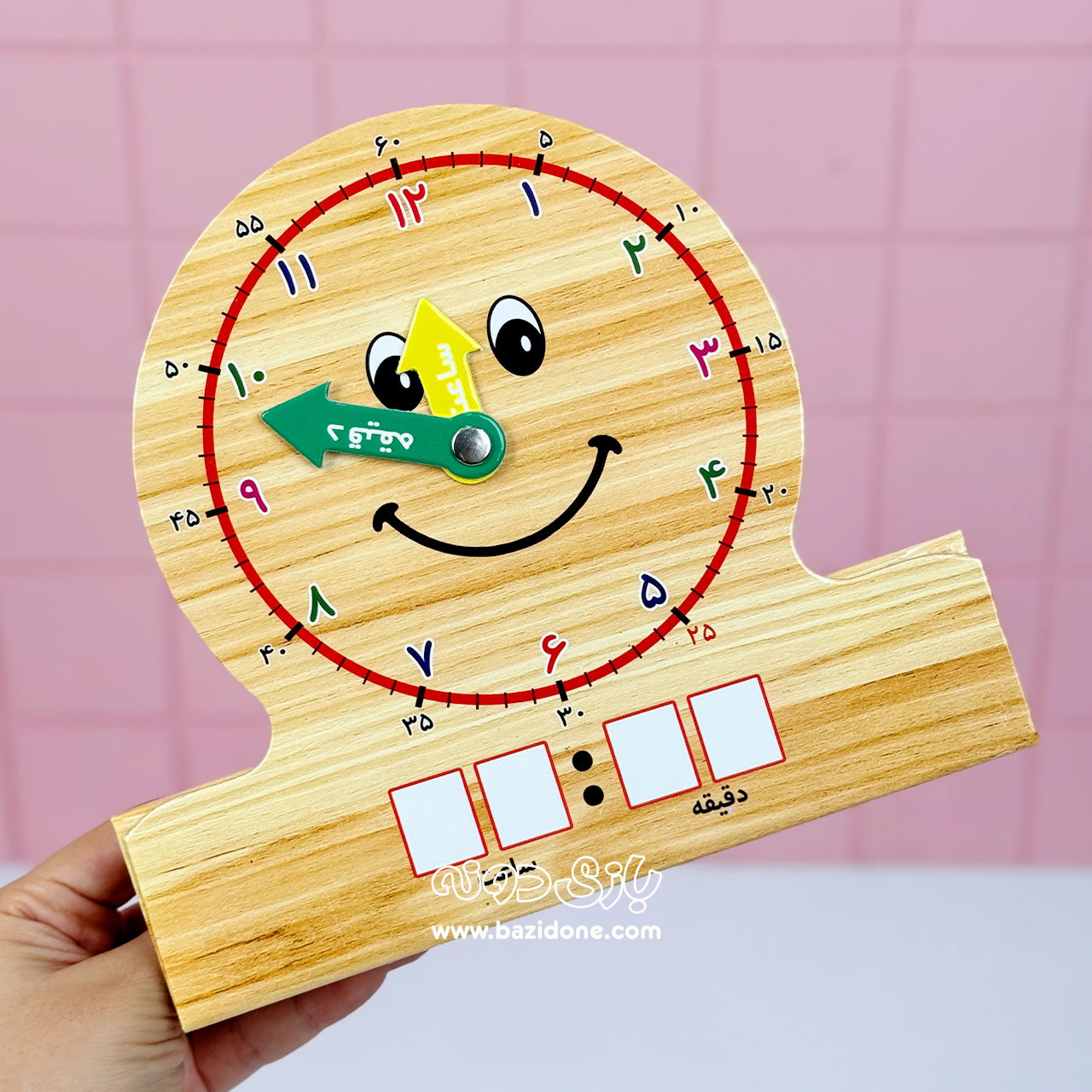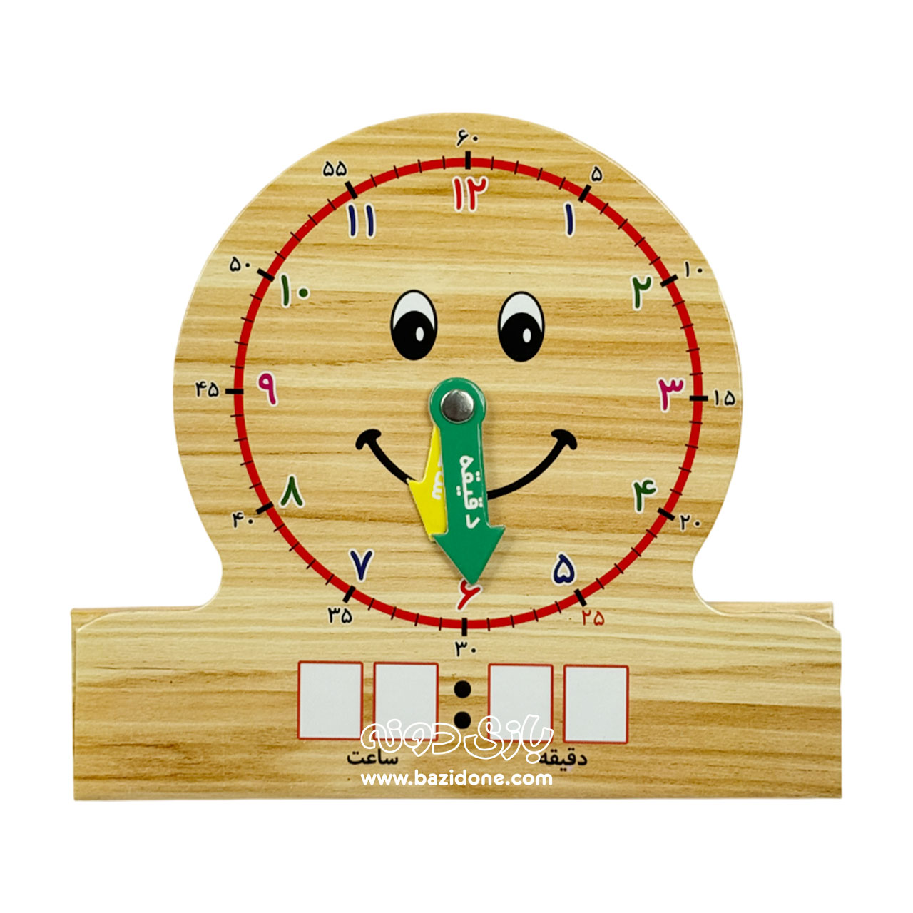 با استفاده از این ساعت بچه ها به راحتی می توانند مفهوم ساعت و دقیقه را بیاموزند. این وسیله می تواند یکی از ابزار های آموزشی بسیار مؤثر در سر کلاس باشد.
